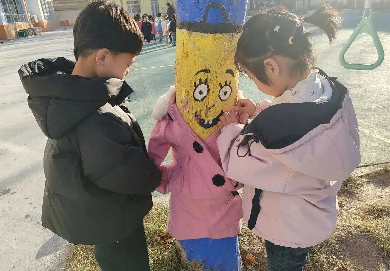 冬意渐浓时,孩子们化身“自然守护者”,为校园树木裹上厚厚的“冬衣”,在劳动中体会关爱与责任。