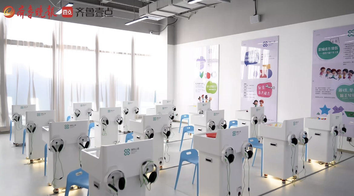 “心智谷”位于日照市青少年和妇女儿童活动中心十层,总面积约2200平方米,以“青少年成长赋能中心+心理服务枢纽”为定位,构建覆盖个体、家庭、学校、社区、企业的多层级心理服务体系。基地内设有心理智慧云中心、VR行为训练室、AI心理咨询室、心理剧场等十大功能区,融合人工智能、虚拟现实等前沿技术,提供沉浸式心理训练与互动支持,推动心理健康服务从“被动应对”向“主动预防”转变。