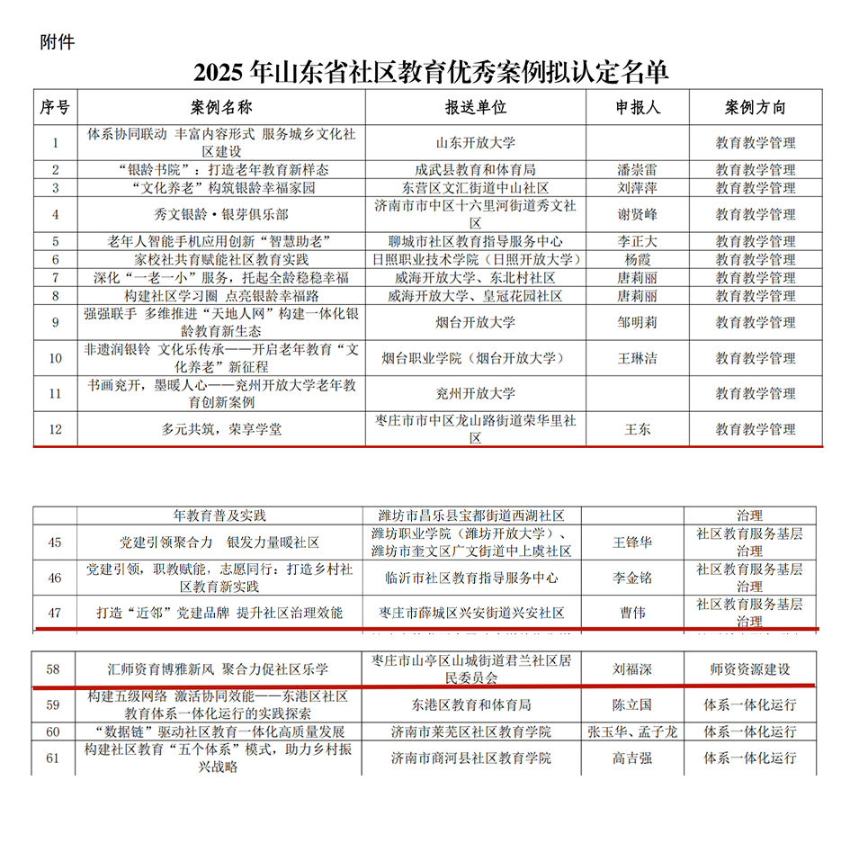 枣庄开放大学社区(老年)教育工作入围省级榜单