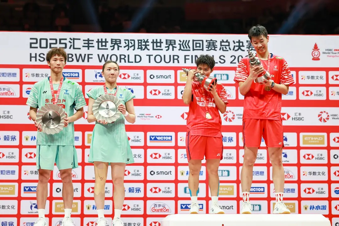 12月21日晚,2025年世界羽联世界巡回赛总决赛在杭州奥体中心体育馆落幕。五个单项的决赛接连上演,国羽选手出战其中四项决赛,最终收获1冠4亚。