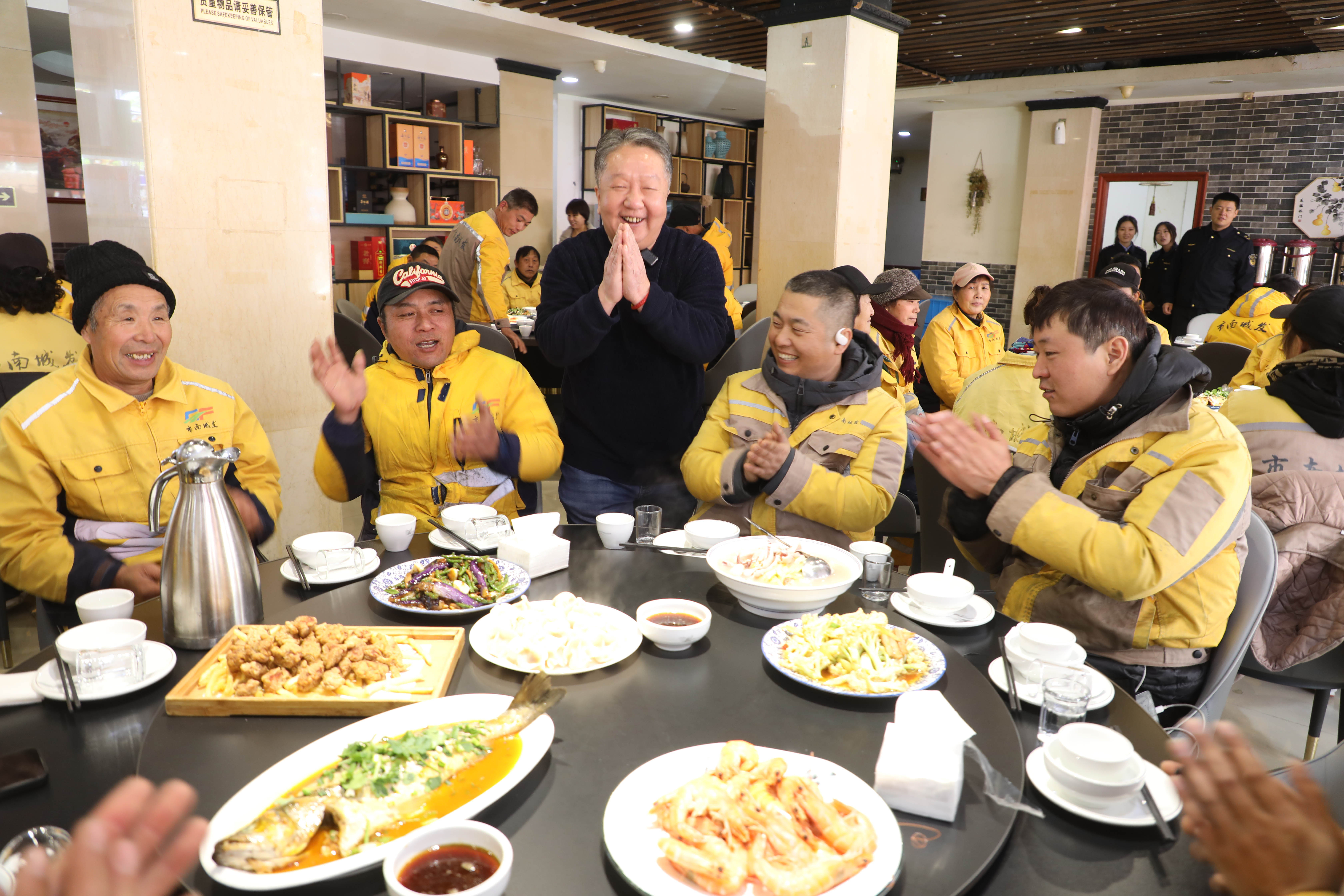 12月21日上午11时30分,在位于青岛市市南区范县路上的粮舍海鲜私房菜馆(范县路店)里,青岛市丰利餐饮有限公司董事长吕明杰邀请辖区70多名环卫工人,用一顿热气腾腾的饺子宴,致敬城市环境“守护者”。