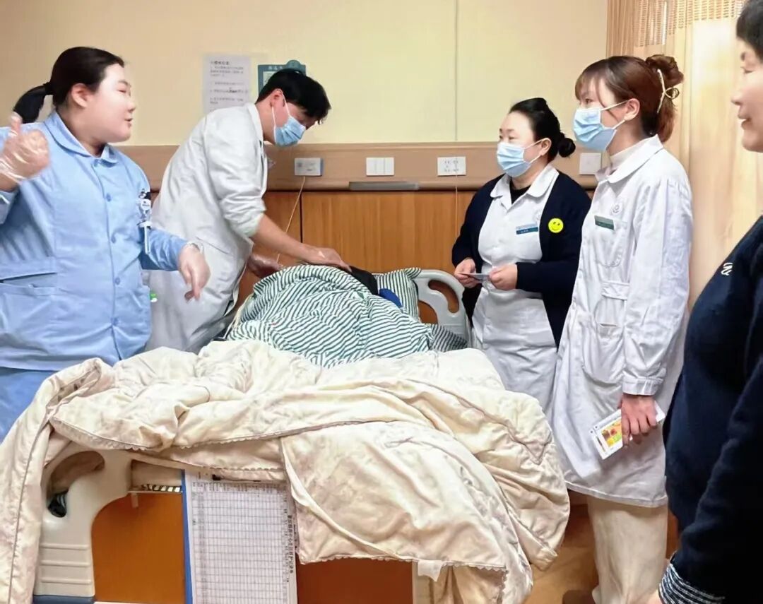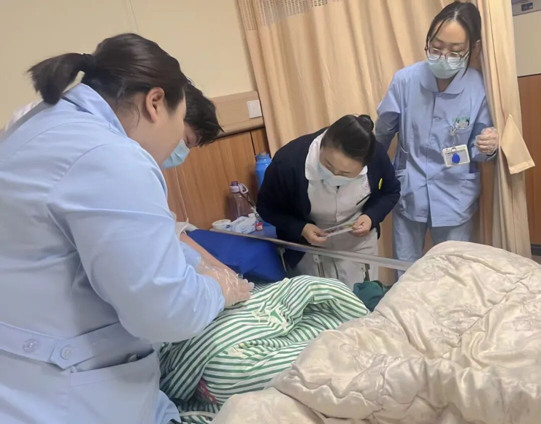 医护团队分成三组开始忙碌。第一组的护士们围在床边,仔细为有伤口的老人评估创面、清理分泌物、更换敷料。82 岁的张爷爷患压疮已有两个月,辗转护理总不见好,“躺着疼、坐着也疼,晚上都睡不好觉”。护士一边轻柔操作,一边耐心讲解:“爷爷您别担心,我们用的新型敷料能保持创面湿润,还能减少摩擦,恢复得会更快些。” 处理完伤口,张爷爷试着动了动,惊喜地说:“真的不怎么疼了,你们比我儿女还细心!”