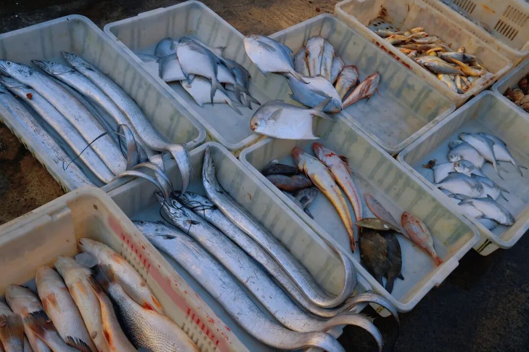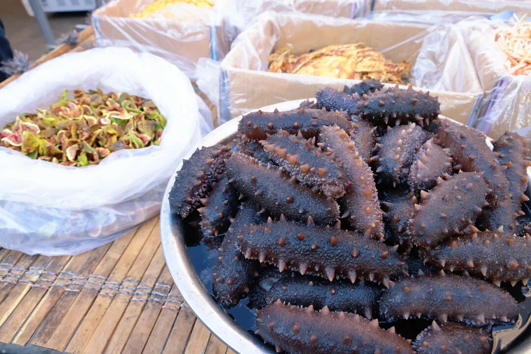 往前走,海的气息愈发浓郁。鲜活的梭子蟹张着肥硕的蟹钳,蟹壳青灰透亮,一掂就知道膏满肉肥;盆里的海虾通体透亮,胖乎乎的海参肉质厚实,是威海人冬日进补的佳品;还有各类海鱼银光闪闪,摊主手起刀落,转眼间就把一条鱼收拾妥当,顾客拎回家便能熬一锅鲜美的鱼汤。