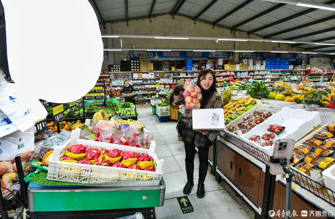 12月18日,在山东省乐陵市西段茂盛超市快递服务网点,工作人员在直播带货。刘振兴 摄