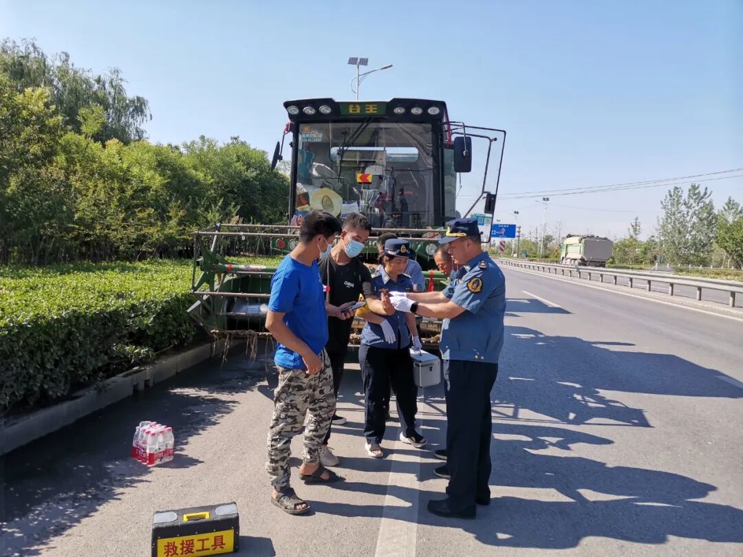 刘福山(右一)带领志愿服务队开展助力”三夏“生产活动。