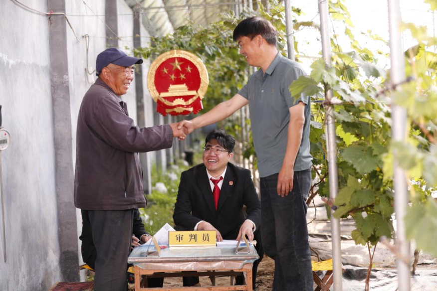 济宁市任城区人民法院南张人民法庭在葡萄园开展巡回审判,促成当事人达成调解,握手言和。