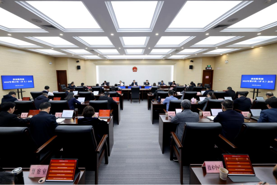 省法院召开党组扩大会议,传达学习习近平总书记在中共中央政治局集体学习时的重要讲话精神和省委十二届十次全会精神等。