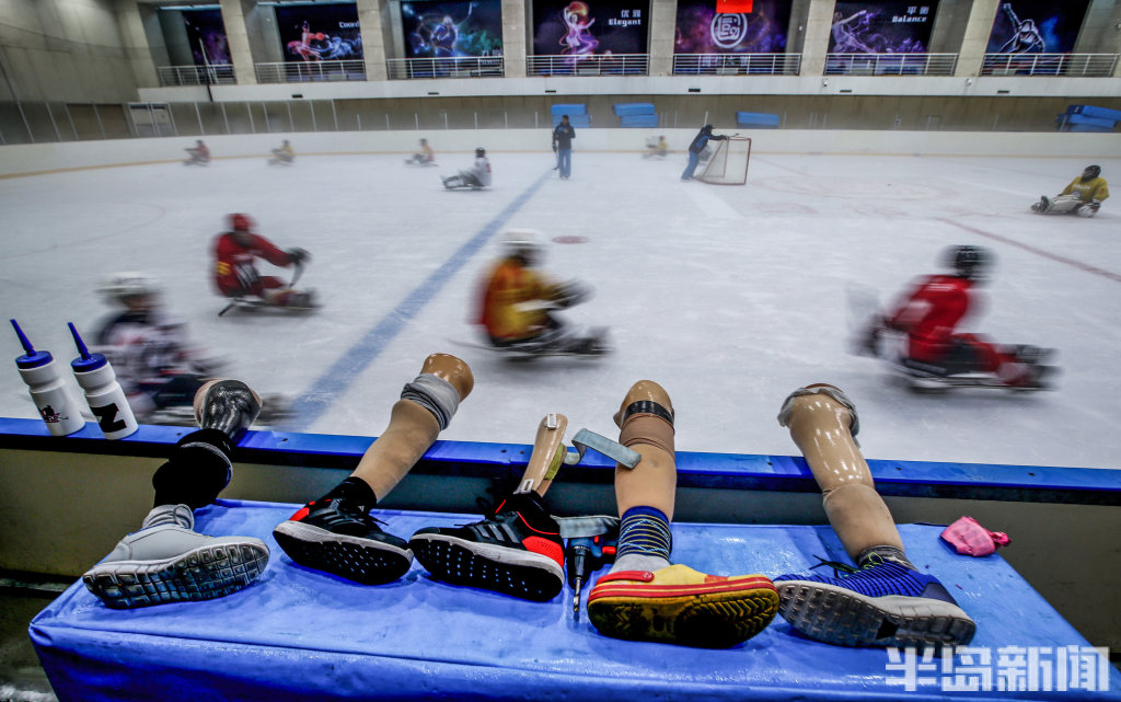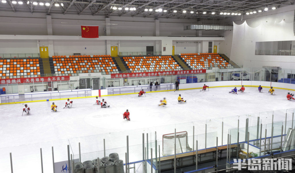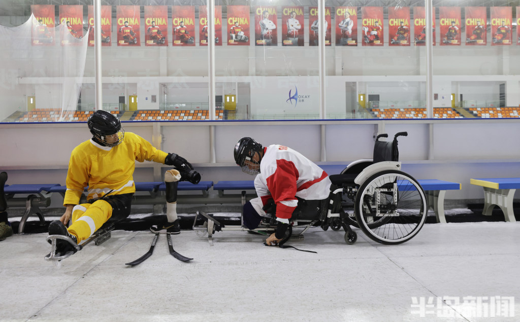 2025年11月,北京,中国冬残奥会冰球队员准备冰上训练