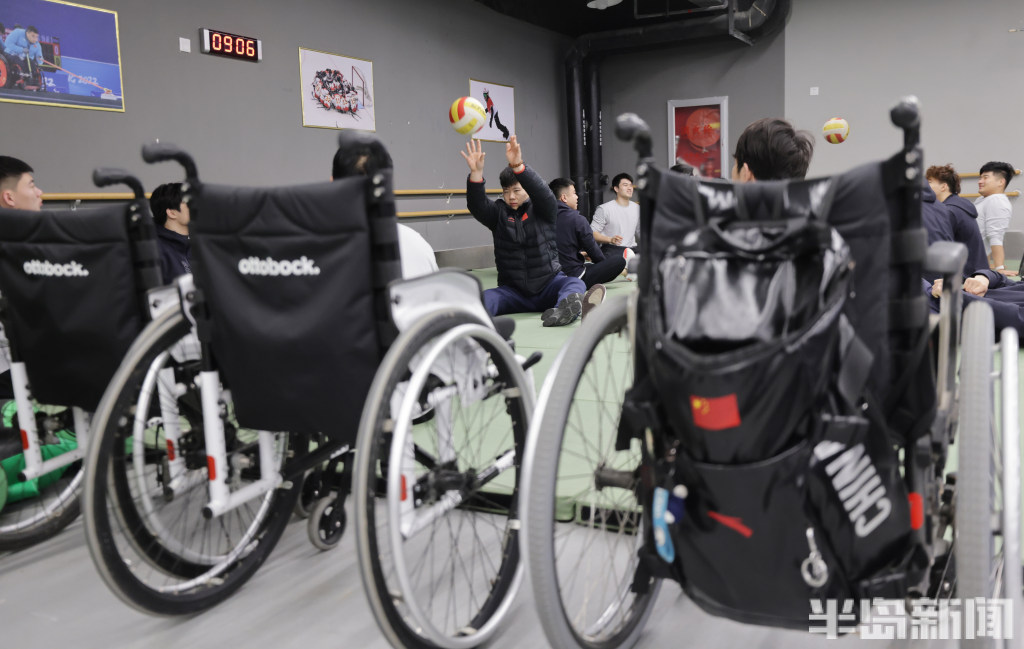 2025年11月,北京,中国冬残奥冰球队员前往场地训练
