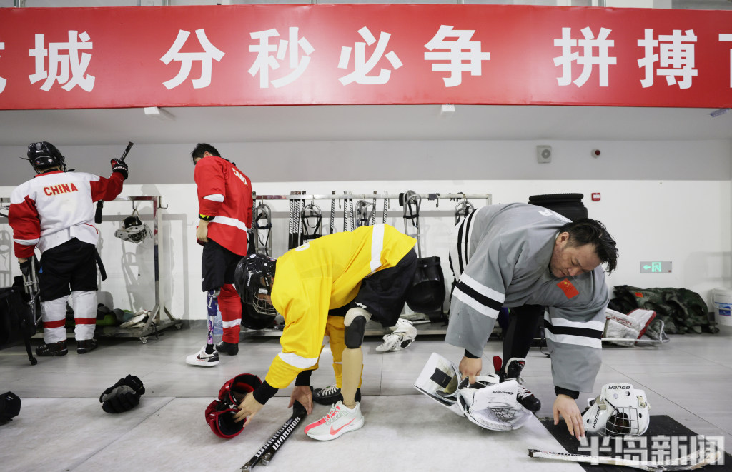 执教多年的俄罗斯教练尼古拉与队员们默契十足,在清晰布置战术后,冰面上瞬间响起冰刀划过的清脆声响:队员们带球穿梭、默契传接,守门员则全神贯注左扑右挡。尽管冰场气温低至冰点,每个队员的球衣却都被汗水浸透。队长汪之栋便是这支队伍的缩影,作为队内核心,他不仅在赛场上冲锋陷阵,训练中更是以身作则。冰上训练结束后,他总会独自留在力量房加练,杠铃推举、哑铃弯举、推胸、引体向上……直到上肢肌肉传来酸痛的膨胀感,才会进行拉伸放松。如今,“一天两练冰、晚间补力量”已成为队员们的训练常态,结束晚饭后的短暂娱乐,大家又会不约而同地回到力量房,为米兰冬残奥会全力积蓄力量。