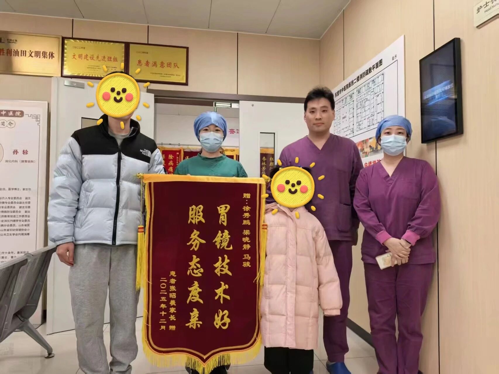 近日,东营市中医院(东营市胜利医院)内镜中心收到了一位患儿家属送来的锦旗与感谢信。锦旗上“胃镜技术好,服务态度亲”十个字,承载着家属对医护团队深深的认可与感激。