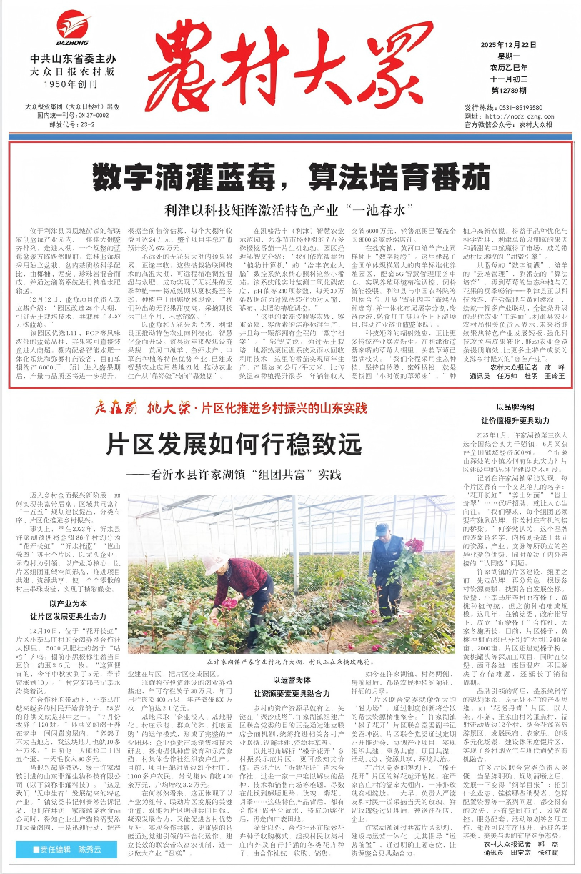 今日报纸头条 | 数字滴灌蓝莓,算法培育番茄!利津以科技矩阵激活特色产业“一池春水”
