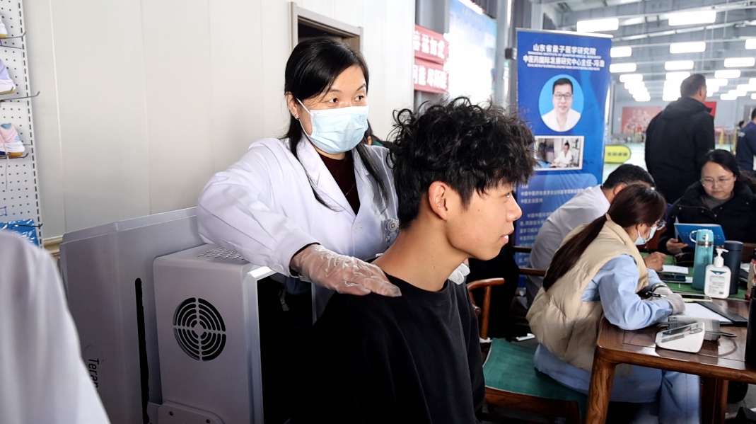 同时,东营赫兹中医馆工作人员为参赛选手提供按摩服务,并向现场人员介绍中医馆特色产品。