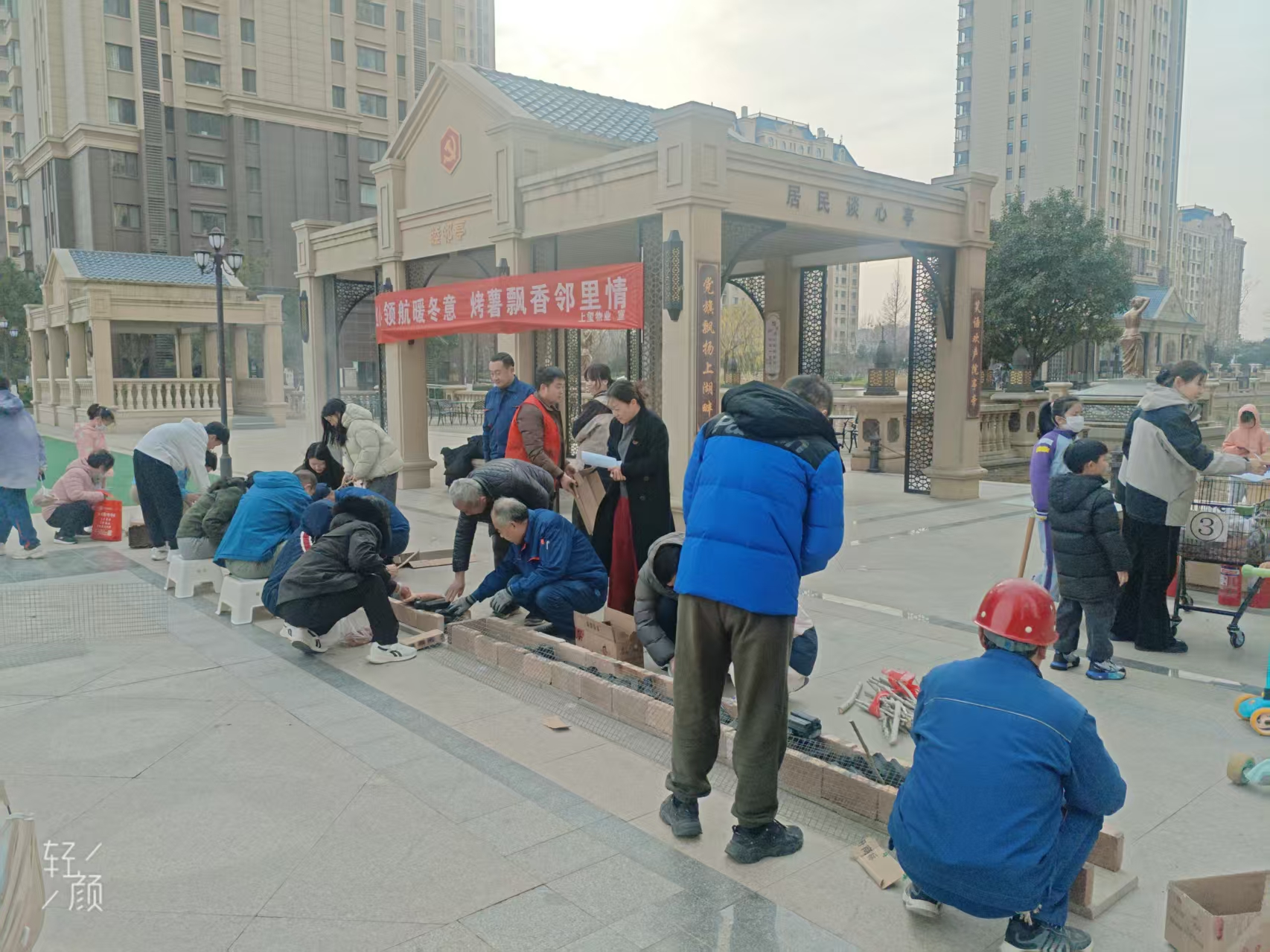森泰御城上院小区内,一缕氤氲的 “烟火气” 勾勒出冬日里的暖心图景。社区网格员与物业工作人员提前筹备,用红砖搭建露天围炉,将一个个饱满的蜜薯整齐铺在炭火旁。随着温度渐升,浓郁香甜在园区内弥漫,居民们闻讯自发围聚炉边,或亲手翻动烤薯,或闲话日常趣事,孩子们在一旁嬉戏追逐,欢声笑语与薯香交织,定格成邻里和睦的温暖瞬间,让社区的凝聚力与归属感在质朴互动中悄然升温。
