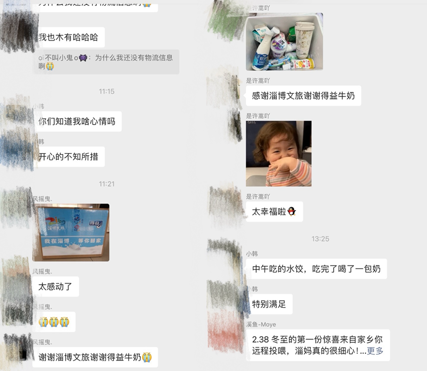 12月21日,来自山东航空学院的李柯欣率先收到了这份心意。“离家在外总会很想家,打开箱子的那一刻,眼泪差点掉下来。”她说道,“尤其是看到得益牛奶,一下子想起小时候每天早晨妈妈都会准备一瓶放在书包侧袋。那种熟悉的味道,好像一下子把我拉回了淄博的清晨。”