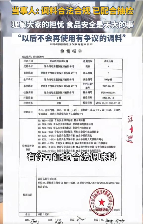 12月22日,当事人小陈发视频回应称,的确在腌制过程中添加了“肉宝王”,但这是正规厂家生产有许可证的合法调味料。小陈表示,以后不会再用这些存在争议的调料,目前已主动配合相关部门开展检验检测,对腌鸡生鸡进行抽检,预计结果会在一个星期左右出来,结果会贴在店铺门口。