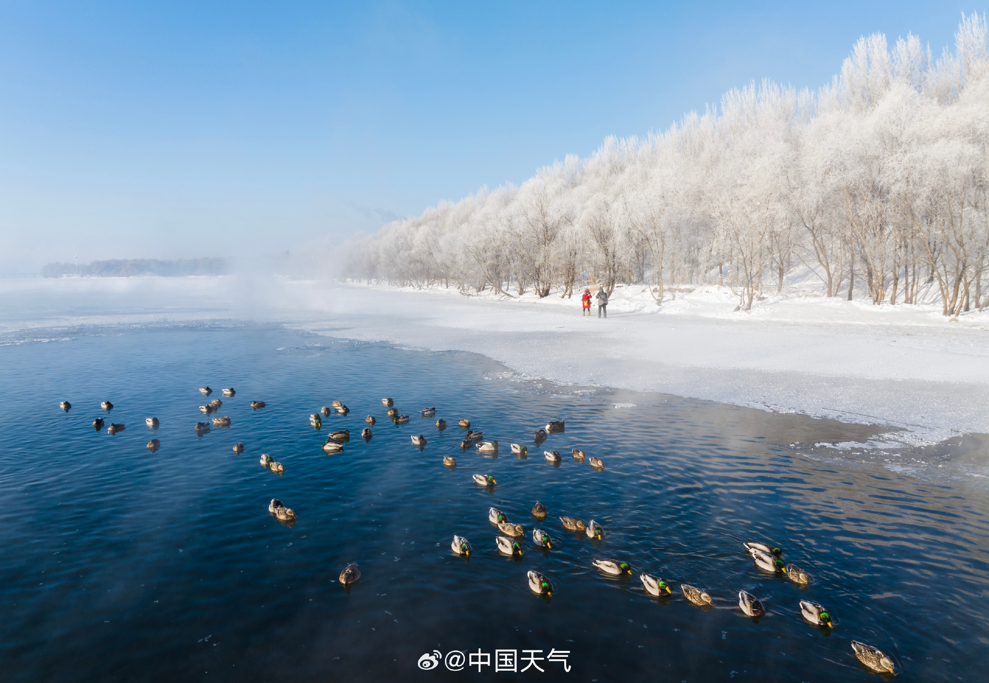 水畔雾凇:粼粼水波漾两岸缀晶花