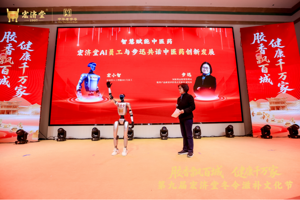 开幕式上的多项重磅成果集中落地,充分彰显了宏济堂以创新驱动产业升级的引领力,其中数智技术与国药的深度融合成为一大亮点。国家药品监督管理局胶类产品质量评价重点实验室研究员步迅与宏济堂制药人工智能001号员工——“宏小智”展开了一场别开生面的对话,共同解读宏济堂阿胶的品质及宏济堂在推动阿胶产业发展中做出的贡献。“每一张驴皮,都必须经过DNA分子鉴定。”步迅的解读道出了宏济堂阿胶金牌品质的根基。为破解过去阿胶行业“杂皮混用”的乱象,宏济堂率先与山东省农业科学院生物技术研究中心联合成立“中药源性分子鉴定技术研究中心”,将DNA检测技术引入阿胶生产,从源头上保证驴皮原料的真实可靠,实现原料张张检测、成品批批把关、阿胶盒盒溯源的全链条质量管控,以数智赋能筑牢品质根基。