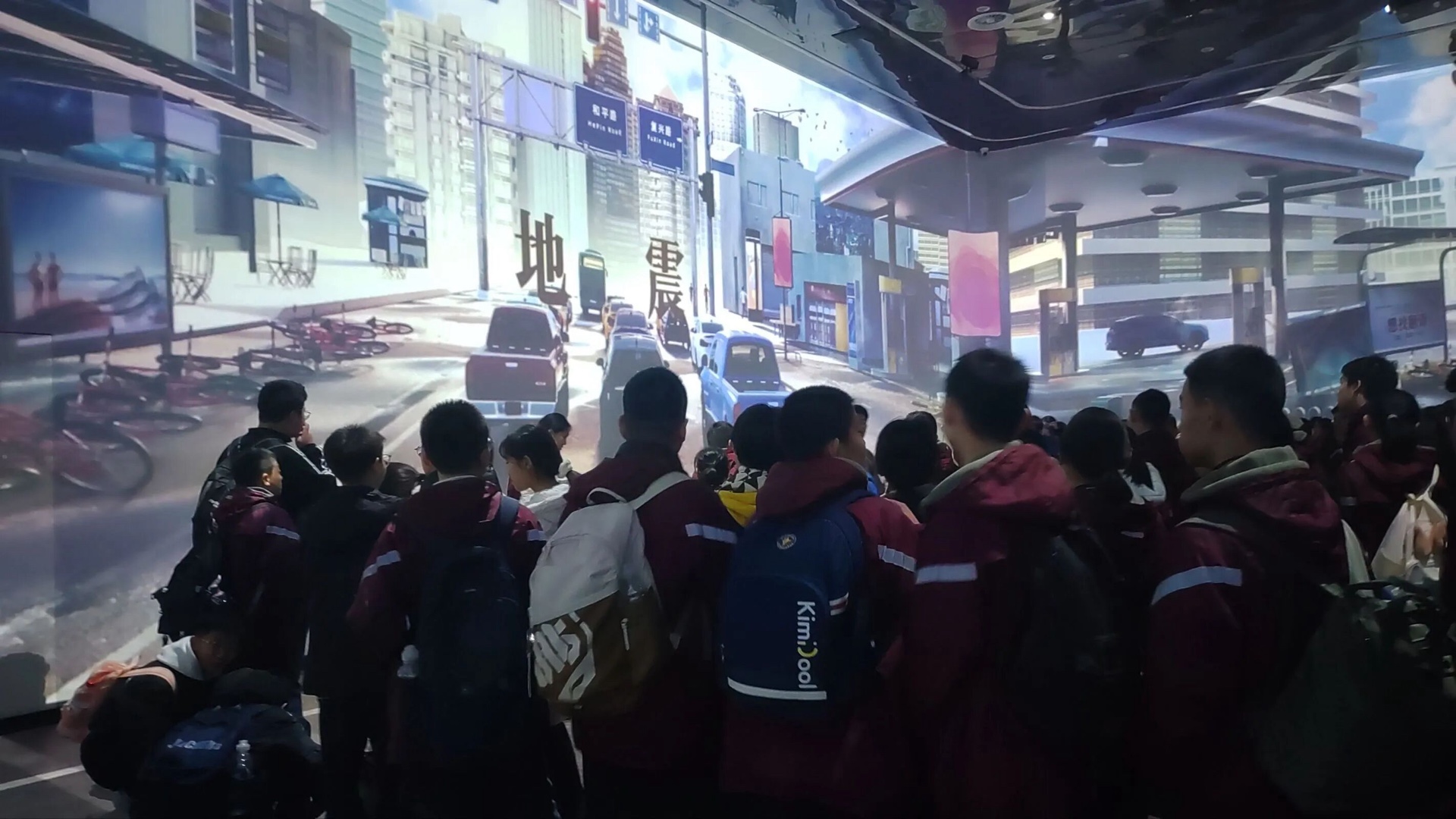 在安全应急馆的九大主题展厅里,同学们完成了一次全方位的安全技能淬炼。自然灾害厅内,当“地震”突然来袭,脚下的地面开始剧烈晃动,同学们迅速蹲下,用手护住头部。“原来地震时是这样的感觉,”张乔希同学在体验后说,“但我知道该如何保护自己了。”