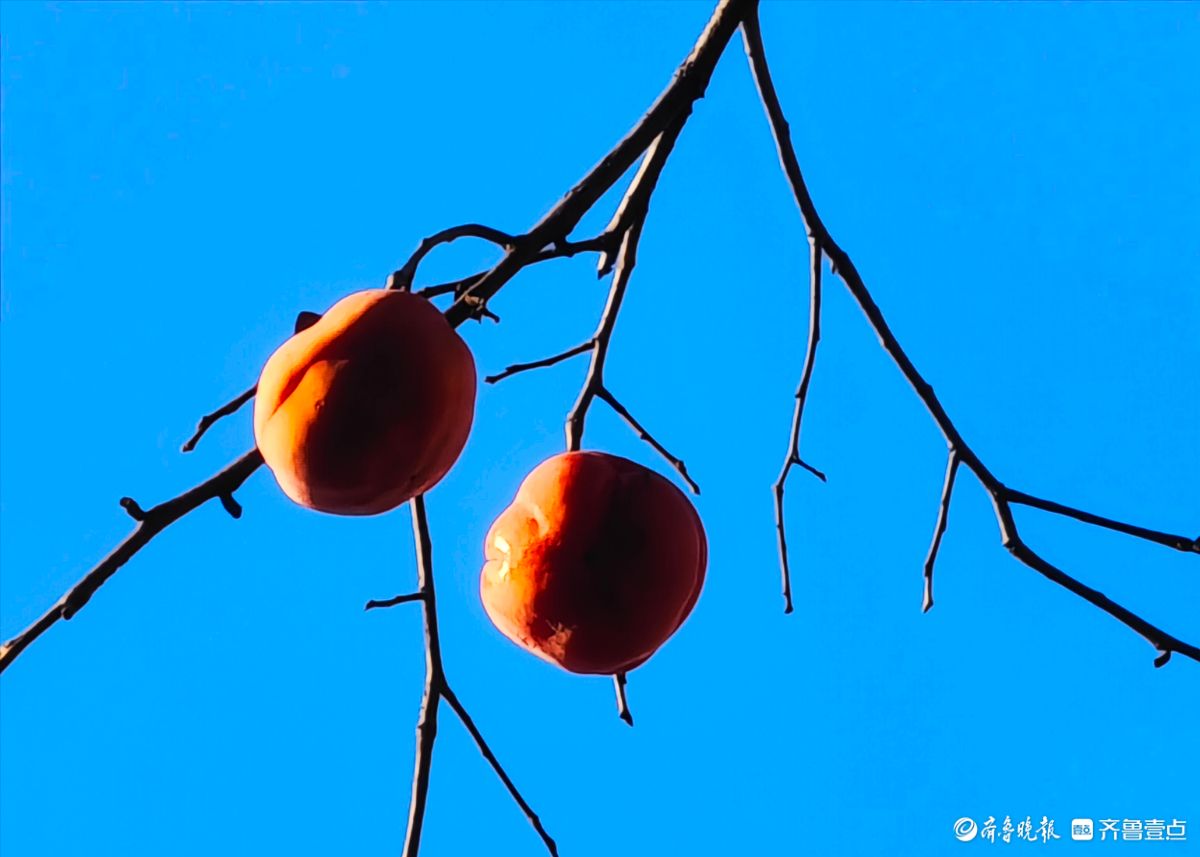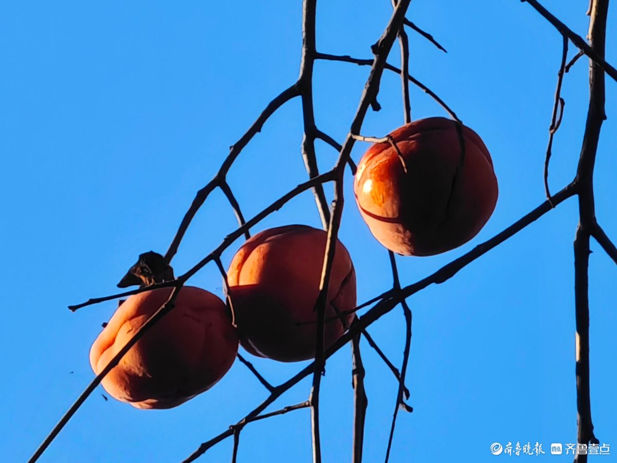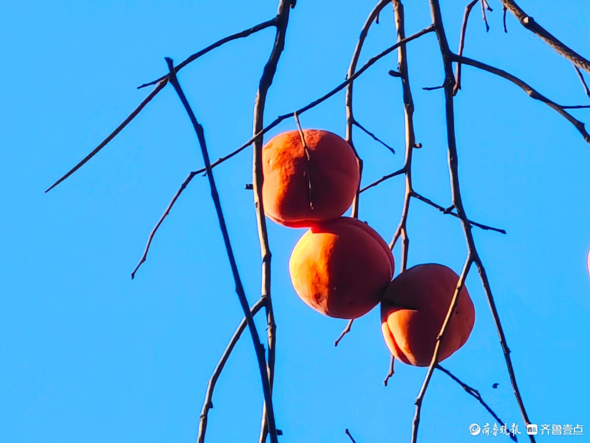 12月18日小区里的柿子树上一个个熟透的柿子让人垂涎欲滴在蓝蓝的天空映衬下更是魅力四射高军摄