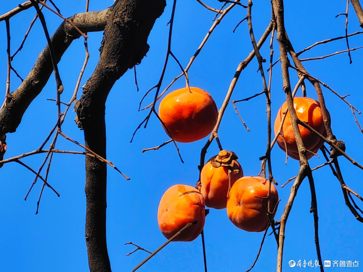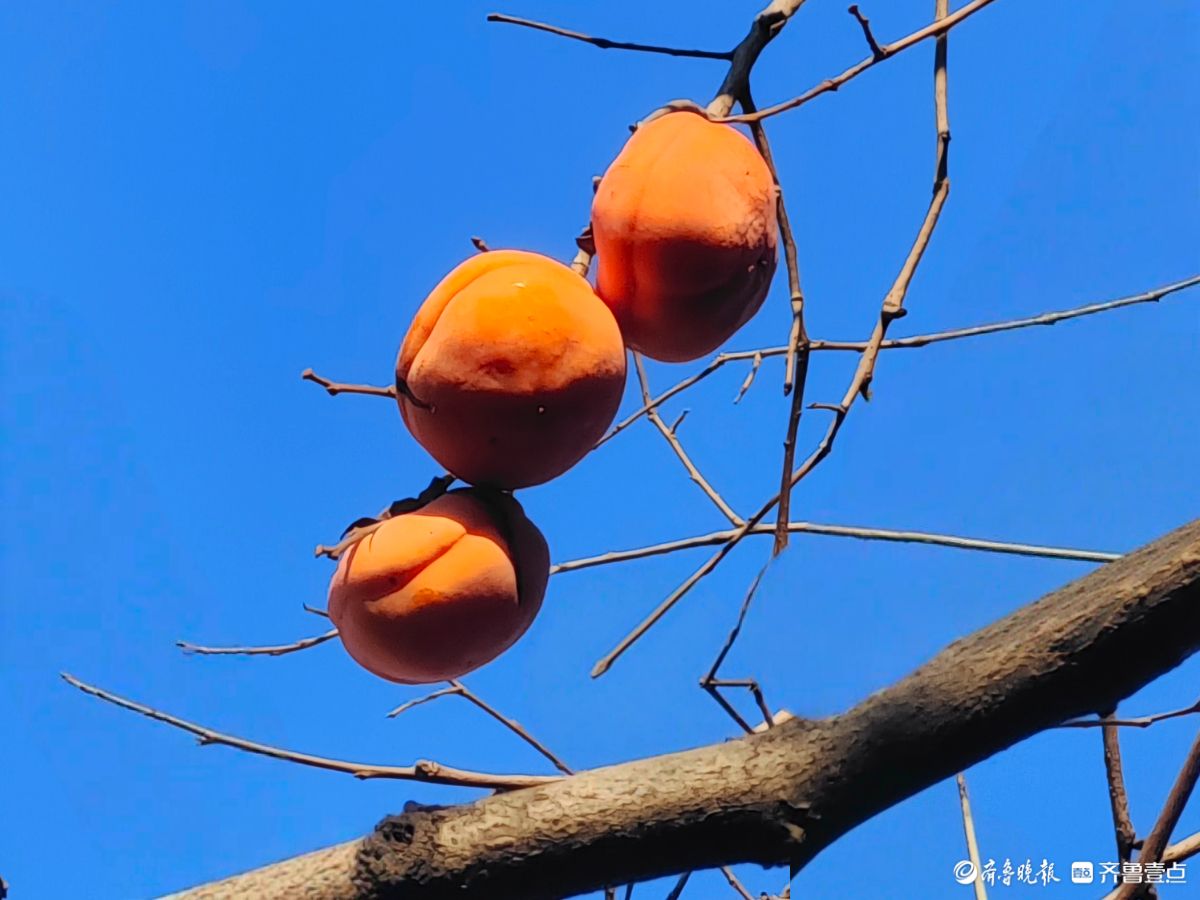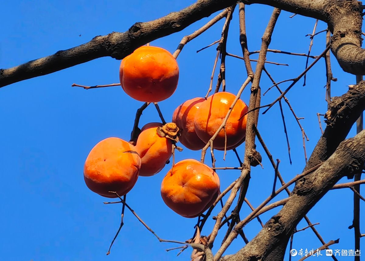 12月18日小区里的柿子树上一个个熟透的柿子让人垂涎欲滴在蓝蓝的天空映衬下更是魅力四射高军摄