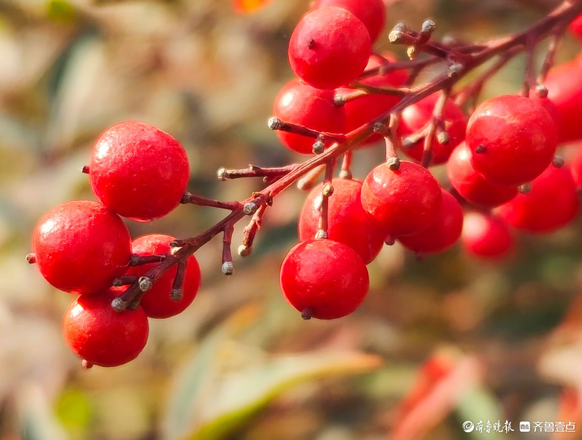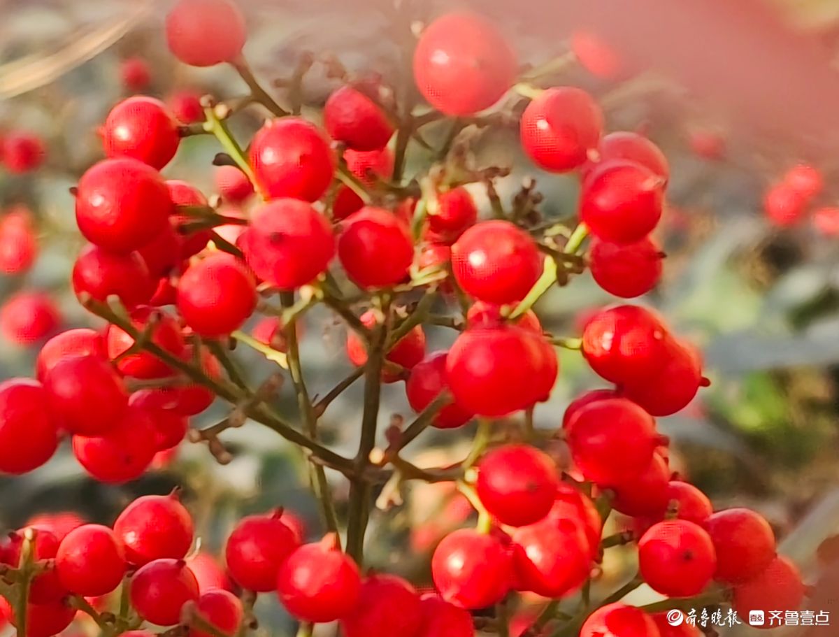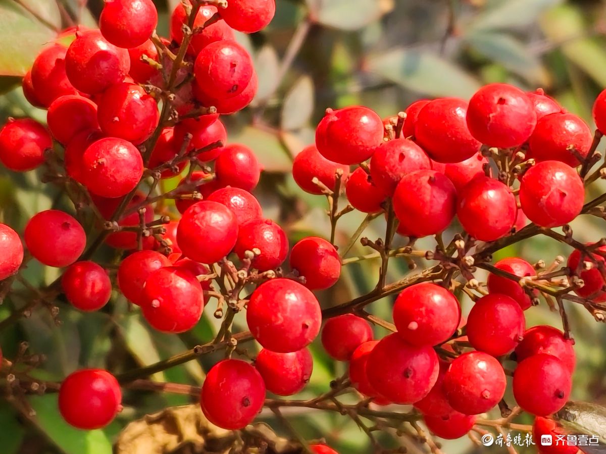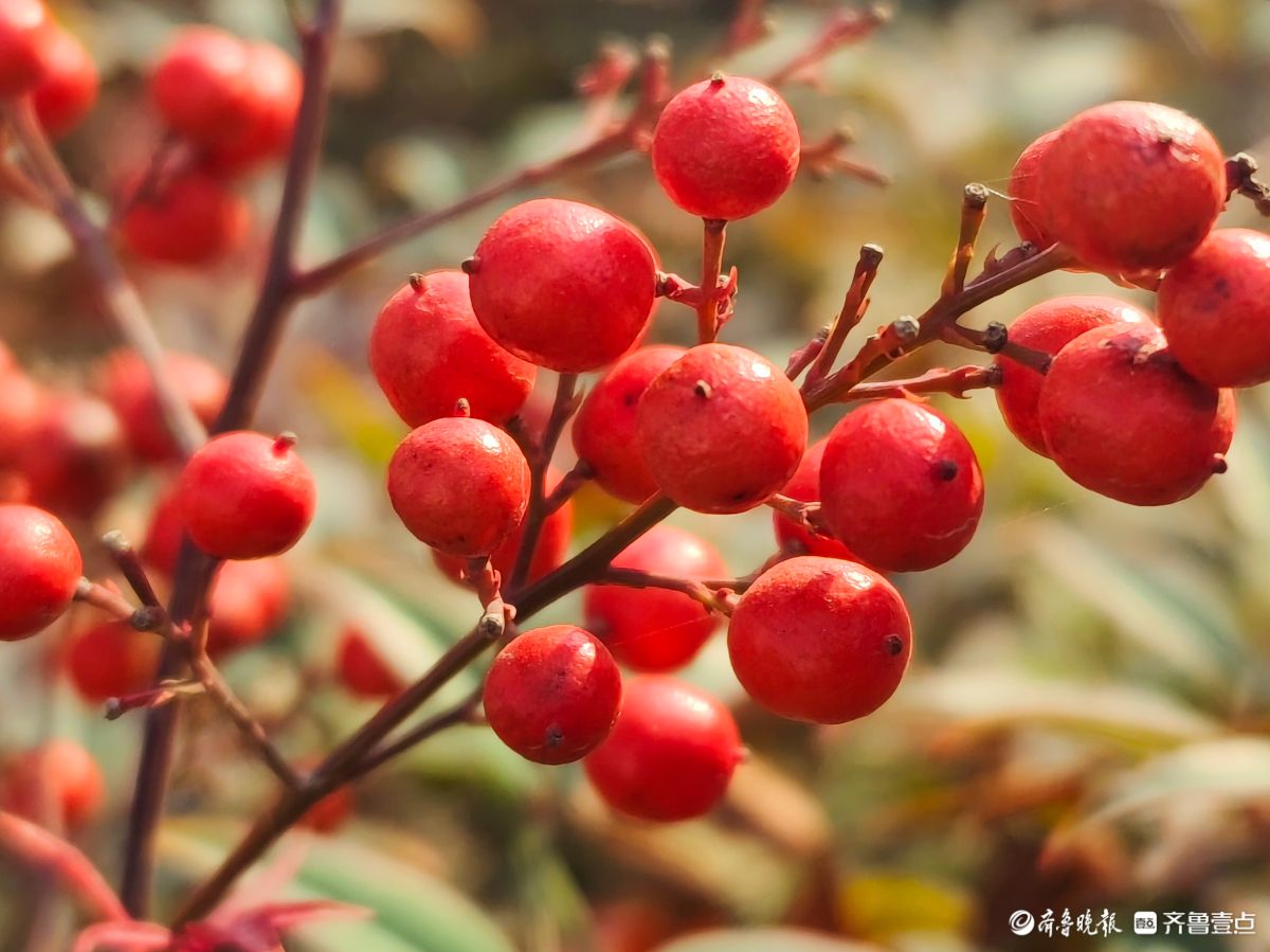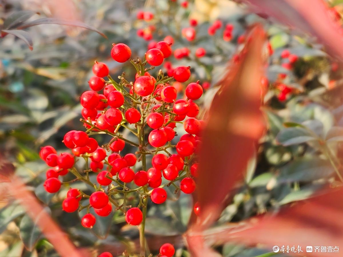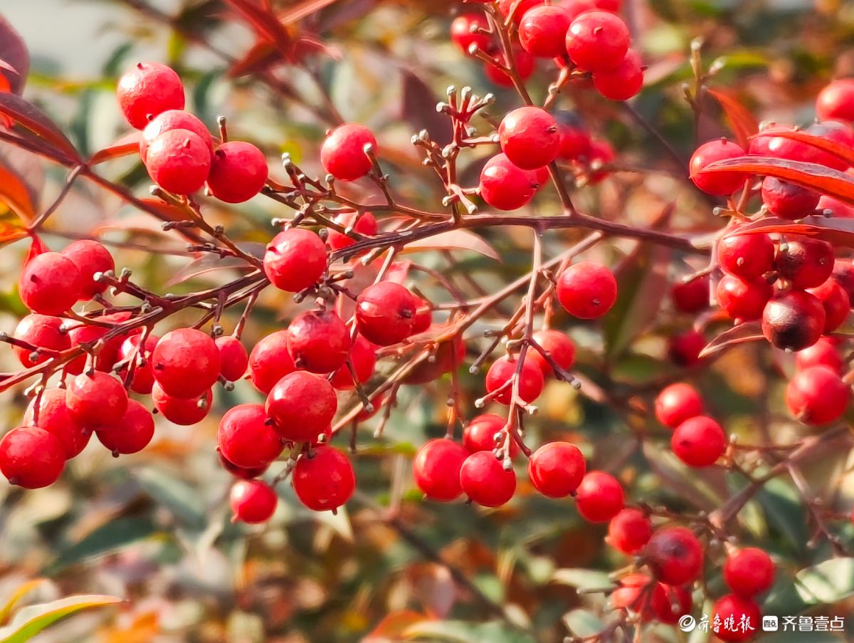 12月18日寒风料峭在临沂沂河岸边滨河公园里南天竹一串串果实如同珍珠一样格外耀眼洋溢着红红火火的气息高军摄