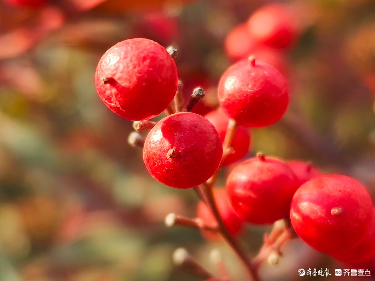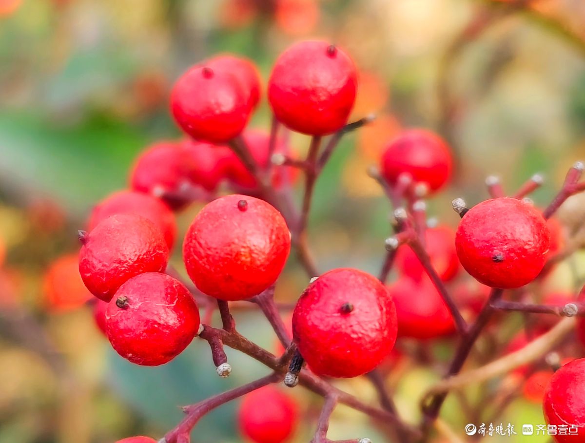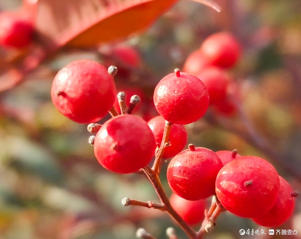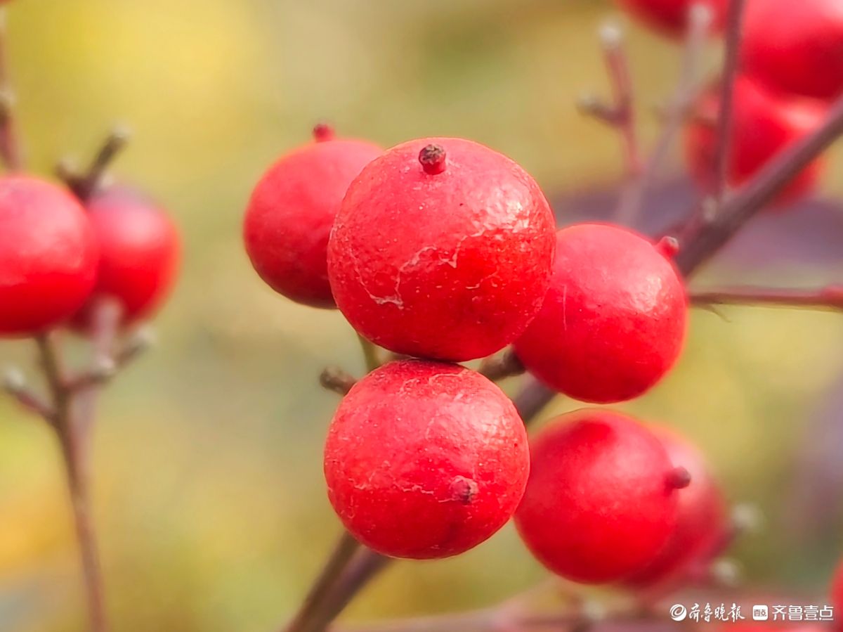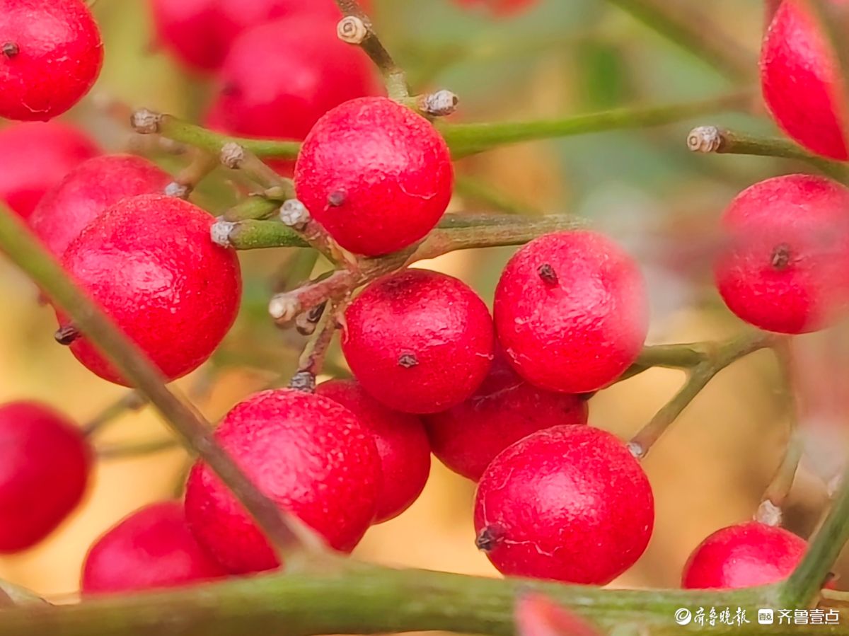 12月18日寒风料峭在临沂沂河岸边滨河公园里南天竹一串串果实如同珍珠一样格外耀眼洋溢着红红火火的气息高军摄