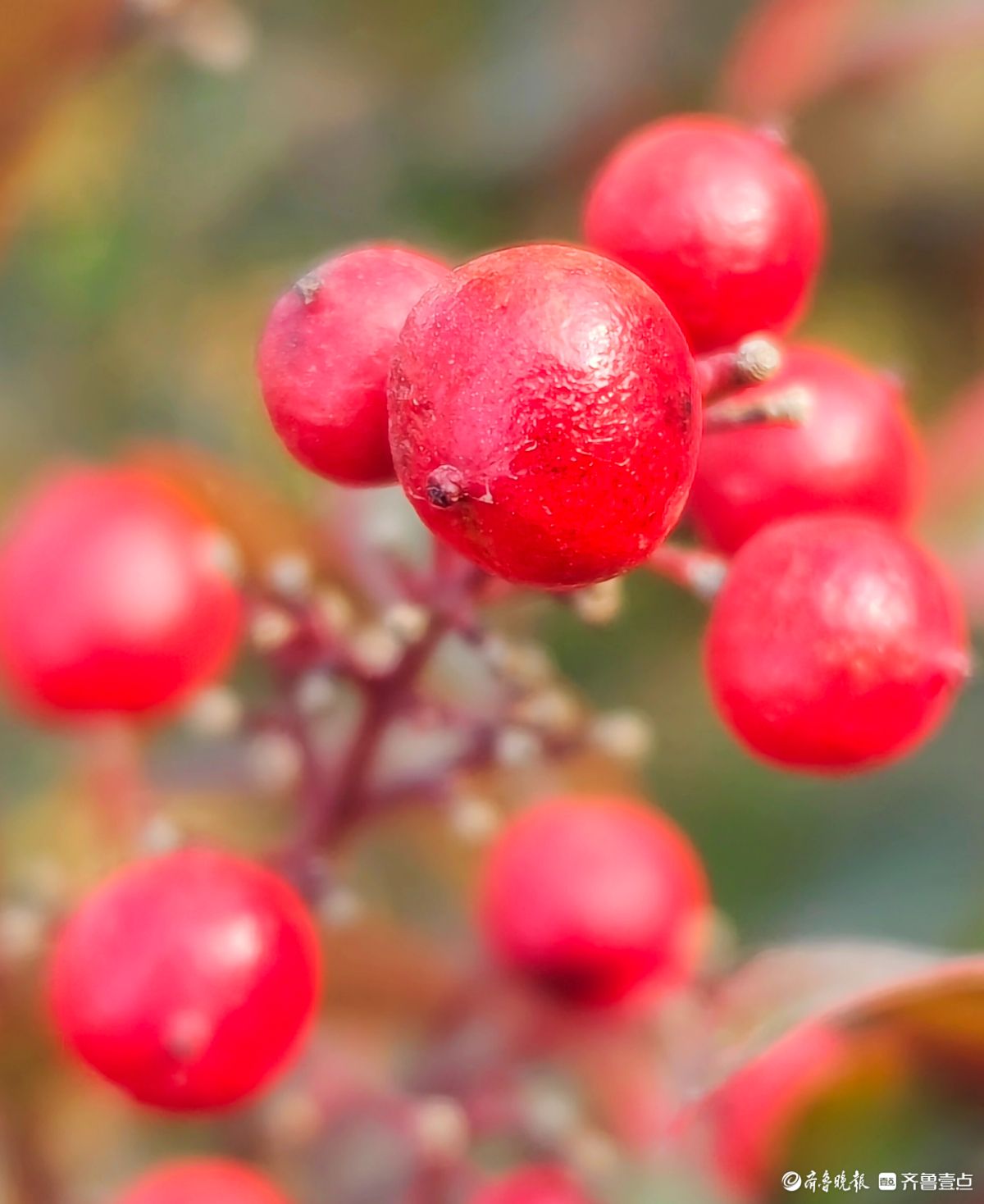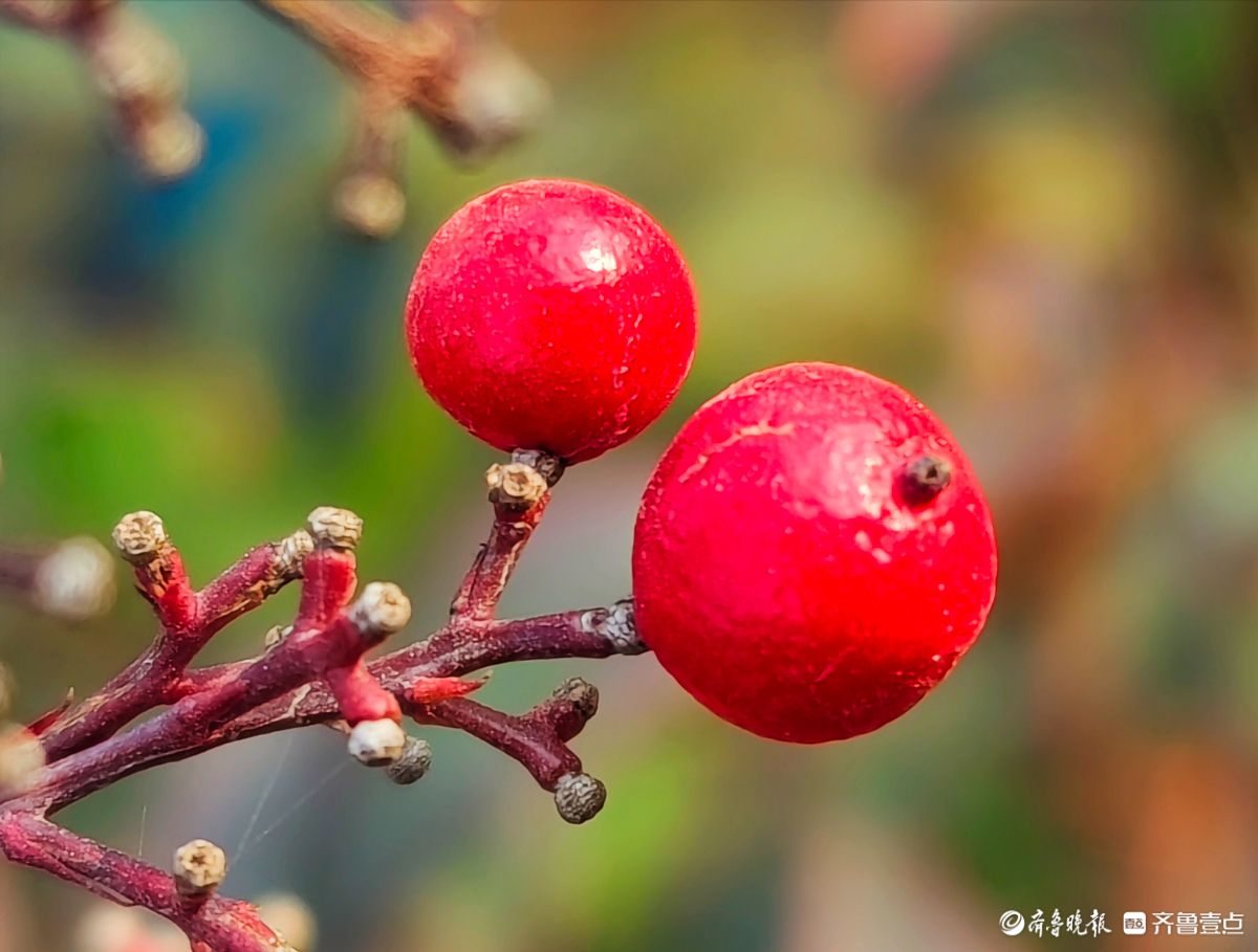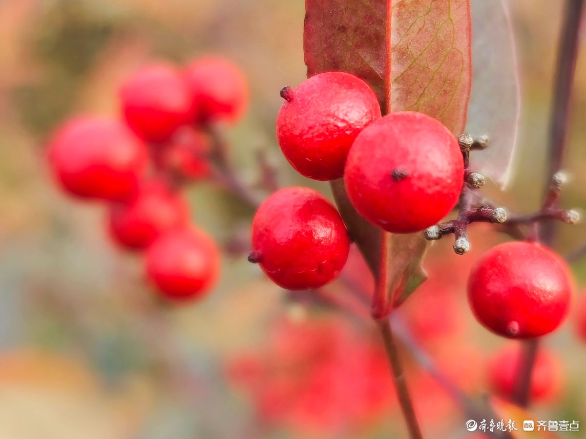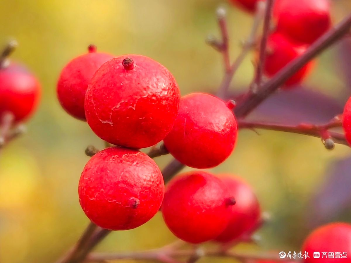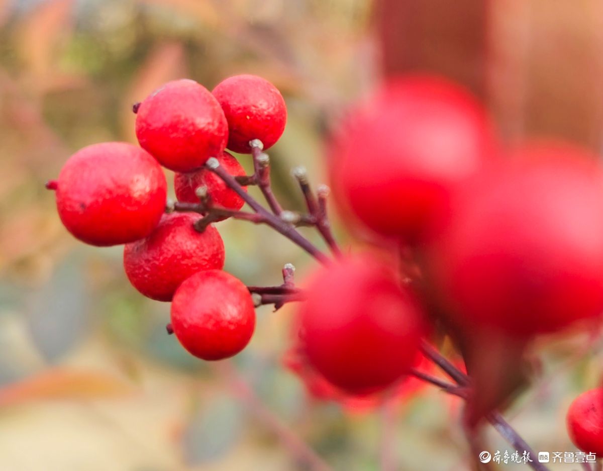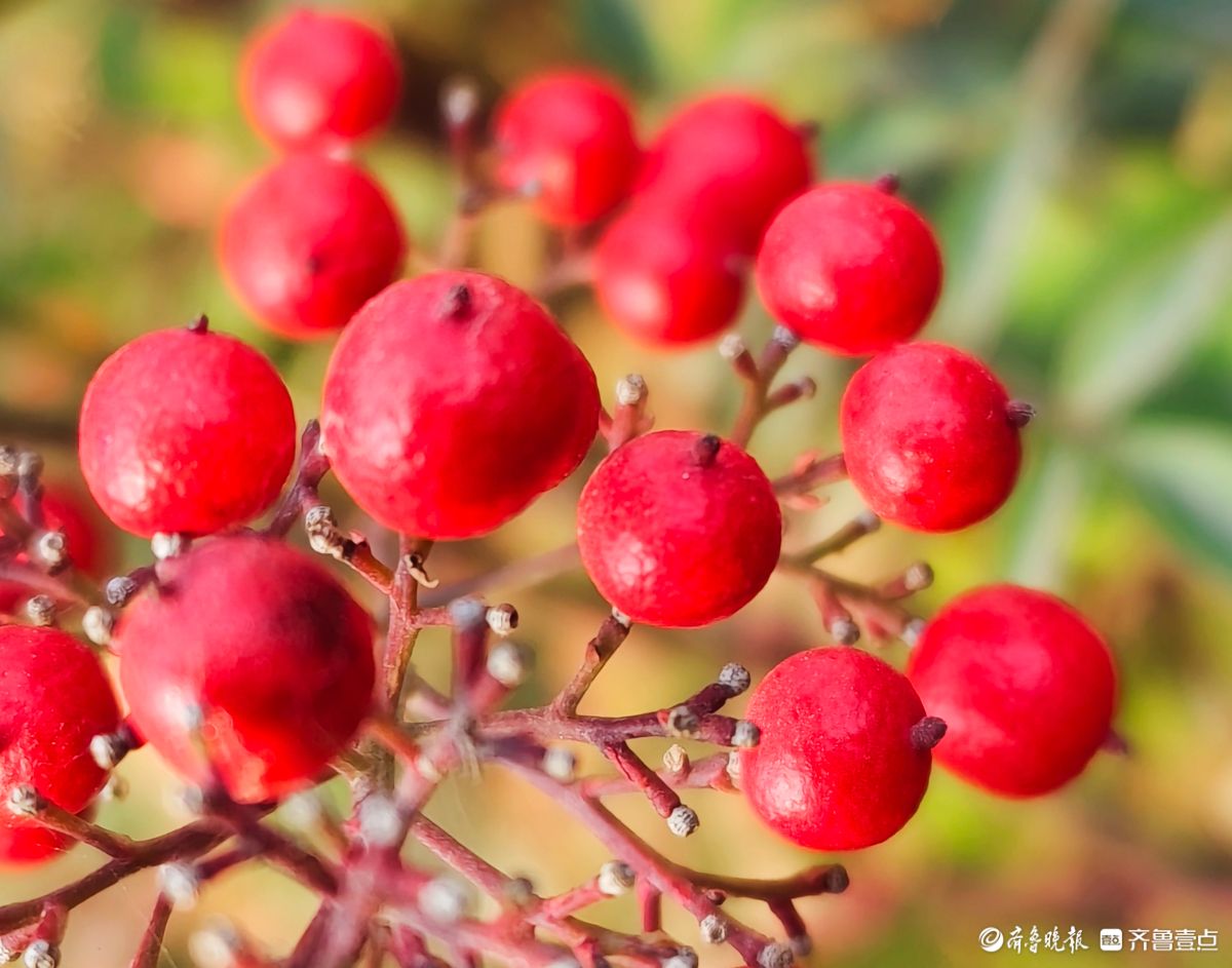 12月18日寒风料峭在临沂沂河岸边滨河公园里南天竹一串串果实如同珍珠一样格外耀眼洋溢着红红火火的气息高军摄