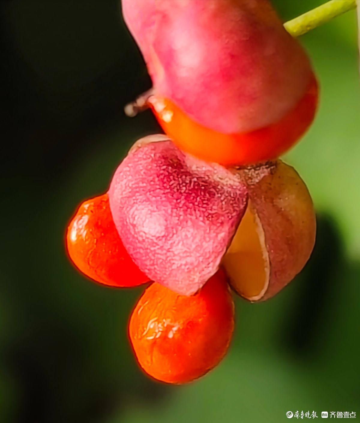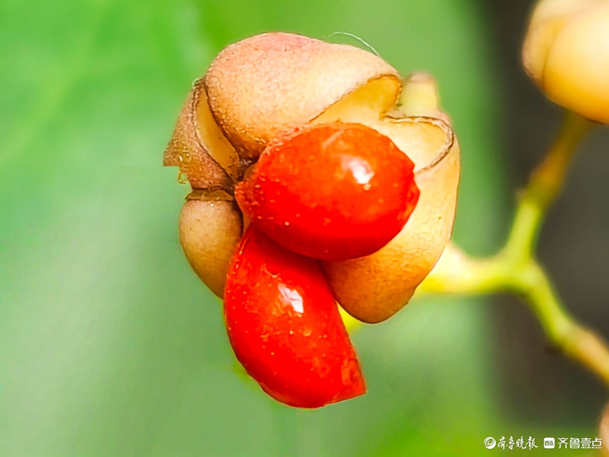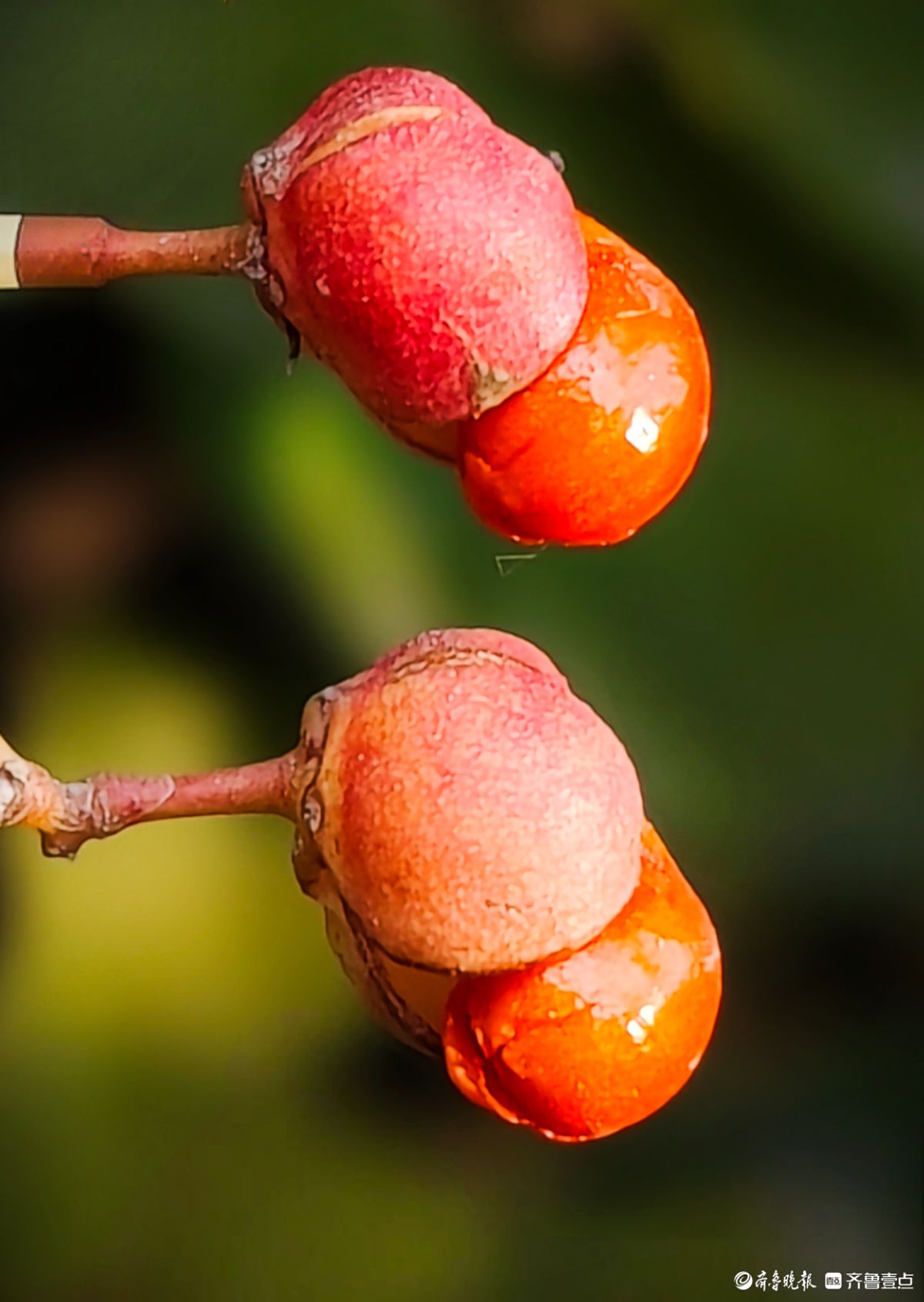 12月18日在临沂沂河新区道路两旁绿化带里冬青果实开始脱壳一个个橘红色果实脱颖而出摇摇欲坠晶莹剔透放慢脚步仔细端详这些冬青果实在翠绿的叶子衬托下颜色鲜艳如同剥开的小金桔让人垂涎欲滴高军摄