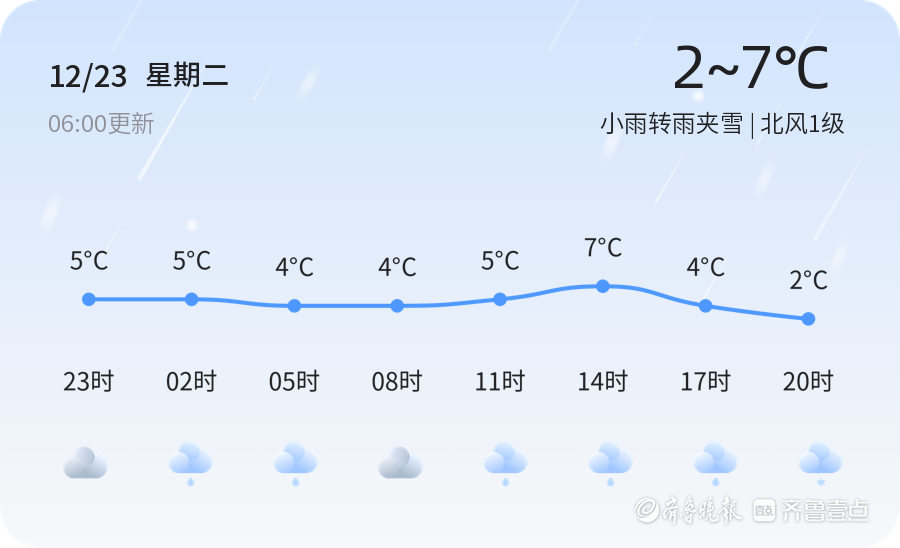 今天是12月23日,星期二,农历十一月初四。济南市迎来了小雨转雨夹雪的天气,气温在2℃至7℃之间,北风1级,空气湿度高达95%,PM2.5浓度为45,属于良好水平。由于天气湿冷,路面可能湿滑,建议市民出行时注意防滑,驾驶时减速慢行,确保行车安全。未来三天天气趋势明天济南市将出现雨夹雪转晴天气,温度降至-3℃至8℃;后天以晴天为主,温度-3℃至7℃;大后天晴天,温度-5℃至1℃。市民需注意气温骤降,适时增添衣物,尤其是早晨和夜间,避免感冒。温馨提示