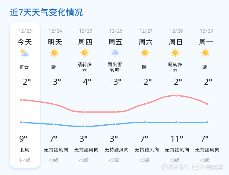 明日12月24日,星期三,天气转晴,气温在-3℃至7℃之间,风力较小,天气较为晴朗。相比今日,气温略有下降,但阳光充足,市民可享受更加舒适的出行体验。