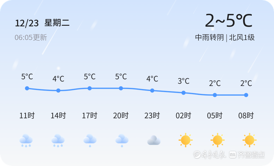 今天是公历12月23日,农历十一月初四,威海市迎来了一轮中雨转阴的天气。当前气温为4.6℃,北风1级,空气湿度为100%,PM2.5浓度为17,空气质量状况为良好。由于今日降雨较多,路面湿滑,市民出行时请注意交通安全,特别是老年人和儿童,建议穿防滑鞋并小心慢行。同时,由于降雨可能导致能见度下降,驾车的市民应保持车距,减速慢行,确保行车安全。