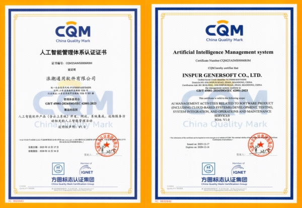 浪潮数字企业通过ISO/IEC 42001人工智能管理体系认证