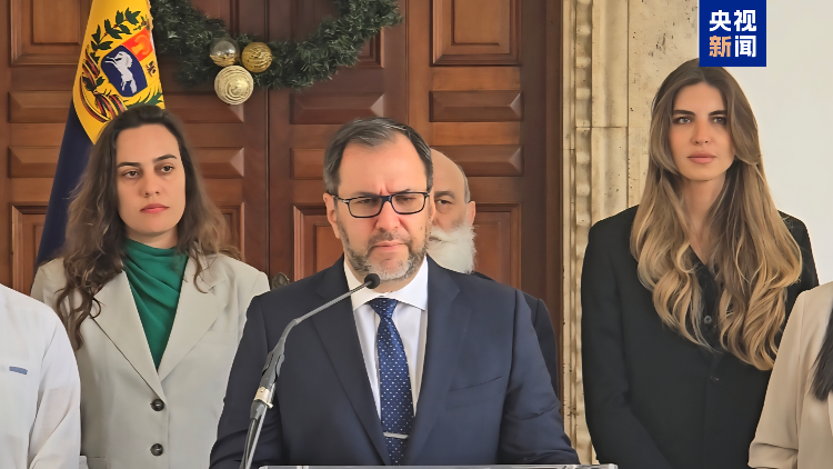 当地时间12月22日,委内瑞拉外交部长希尔在首都加拉加斯通过电视直播召开新闻发布会,宣读总统马杜罗签署的公报。