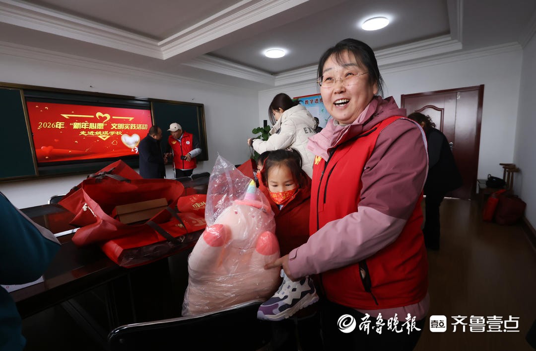 “真好看,这下我的房间也焕然一新了。”22日上午,在蓬莱区村里集小学“新年心愿”礼物发放现场,8岁的瑶瑶(化名)从志愿者手中接过崭新的四件套后,眼里满是欢喜。父母均为听障人士,常年在外地打工,跟着爷爷奶奶生活的她特别希望能在过年时换上新的床单、被套,这份贴心的礼物让她开心不已。“妈妈肯定很高兴,今晚回家我就拆给她看!”和瑶瑶一样,不少孩子都被这份意外的温暖所打动。
