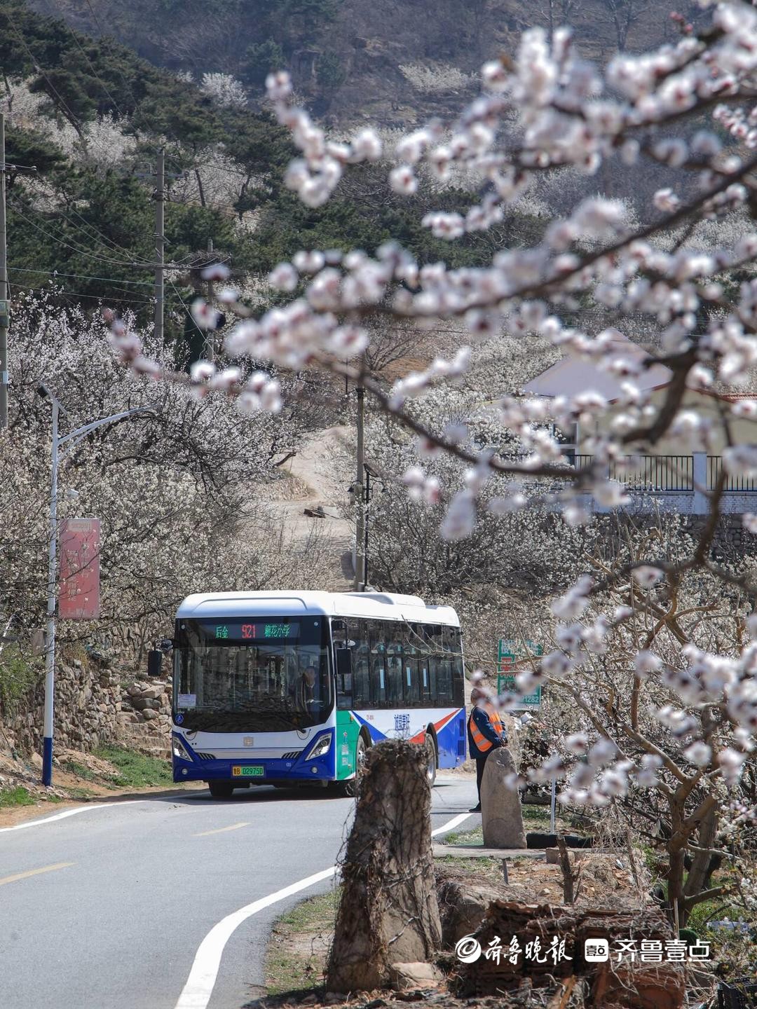 921路不仅保障民生,更串联起山水盛景。沿线书院水库波光粼粼、山林层林叠翠,每年四月樱杏绽放,线路被誉为“开往春天的最美巴士”。驾驶员精心打造“赏樱巴士”装点车厢,吸引市区及周边游客搭乘打卡,让棉花村春日美景广为人知。