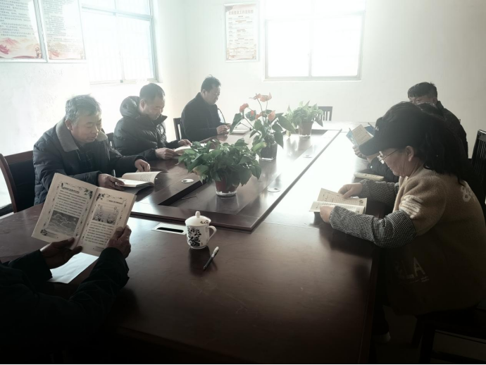 活动现场,蒋场村书架上整齐摆放着《乡村振兴战略学习读本》《新时代乡村振兴政策法规汇编》等各类思政读物和乡村发展相关书籍。村党支部书记首先带领大家学习了乡村振兴战略的核心要义,结合本村发展实际,解读了相关惠民政策,鼓励大家通过读书汲取智慧、凝聚力量,积极投身乡村建设。