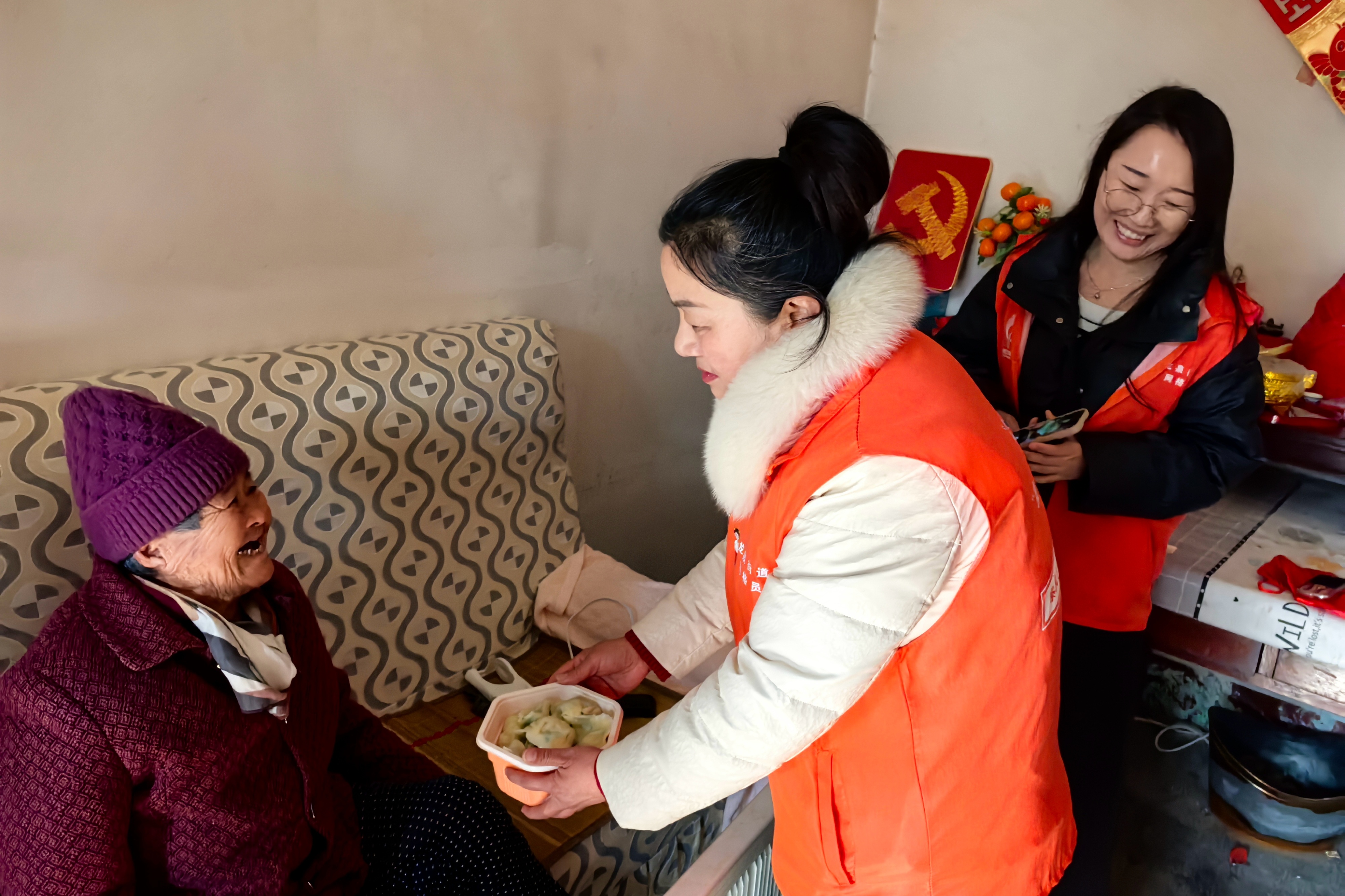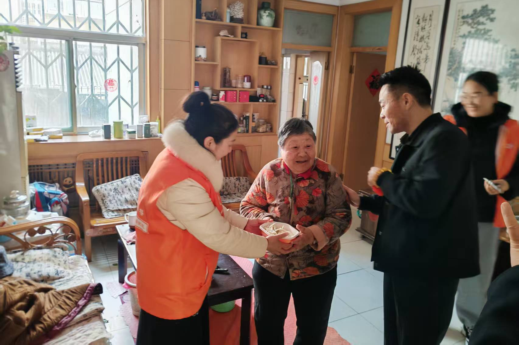 活动当天,社区活动室内暖意融融。大家分工协作,揉面、擀皮、调馅、包饺子,动作娴熟,配合默契。欢声笑语伴随着馅料的香味弥漫在空气中,处处洋溢着社区大家庭的温馨与欢乐。不一会儿,一个个饱满精巧的饺子便整齐排列开来。随后,社区工作人员带着刚煮好的饺子,走访慰问独居老人。每到一户,社区工作人员都与老人促膝谈心,细心询问他们的身体状况、生活起居和实际需求,耐心叮嘱老人注意添衣保暖、保重身体。