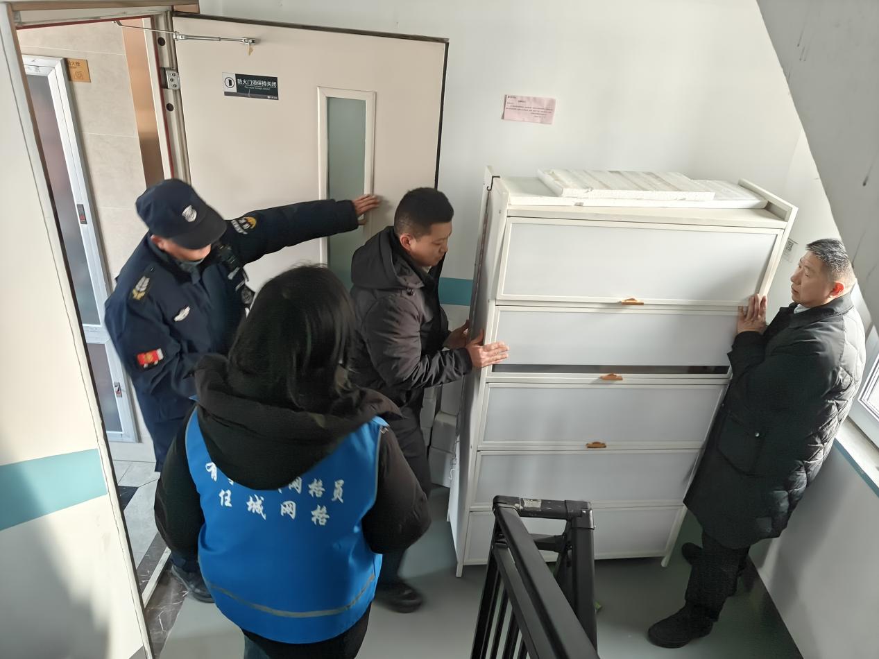 清理现场,社区工作人员、网格员、物业人员分工协作,对辖区内各楼栋楼道、消防通道的杂物进行集中清理。针对部分居民不愿清理、行动不便等情况,工作人员耐心沟通解释,并帮助搬运。