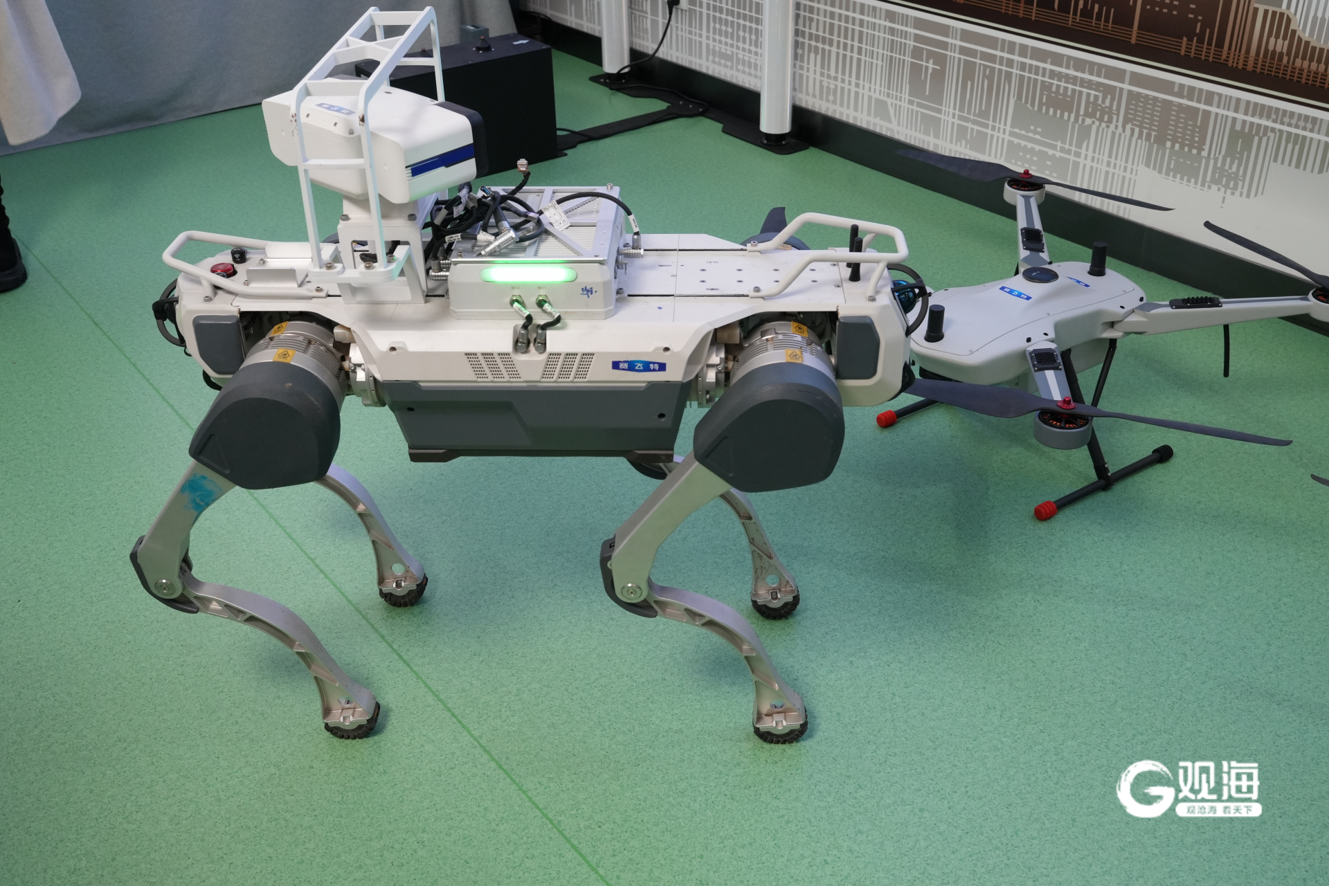 在赛飞特公司展厅,李迪展示了一款已在化工厂、港口等场景落地应用的机器狗产品。“这款机器狗配备有专业智能控制器,能装载丰富行业外设,在巡检、侦查、安防、测绘等多领域协助作业人员完成危险、重复性工作。”李迪表示,这正是公司推动技术落地的一个缩影——通过“感知-决策-执行”一体化的系统能力,让机器人走出演示区,进入真实作业流程,从而切实解决行业痛点、提升运行效率与安全水平,让前沿技术转化为可用生产力。