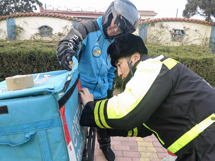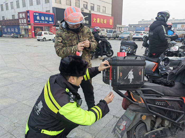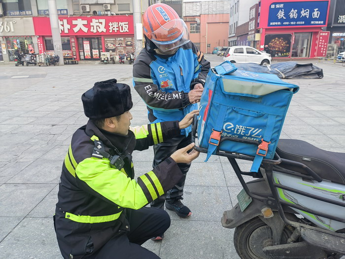 其间,民警结合日常街面执勤之际,深入辖区外卖公司及外卖骑手聚集地,为外卖骑手的车辆粘贴反光贴,让其在夜间行驶时在其他车辆灯光照耀下起到明显的反光警示作用,极大提高车辆的夜间辨识度,为骑手夜间出行增加了安全保障。一位外卖小哥感慨道:“每天送餐都很忙,没太在意车辆安全标识,现在民警帮我们贴上了反光贴,感觉夜间送餐安全多了,警察同志真的太贴心了!”