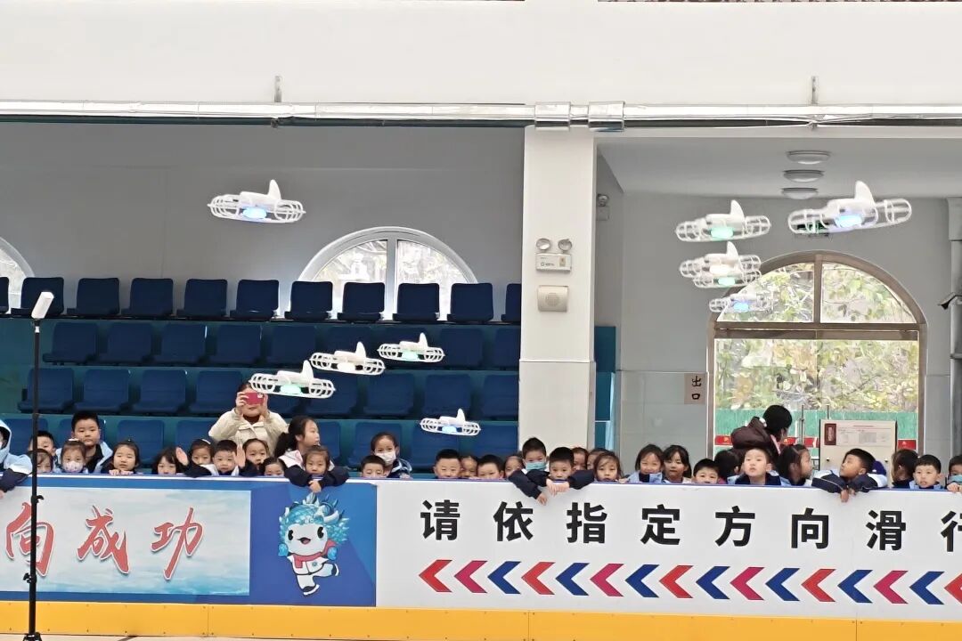 无人机展示区成为全场焦点,操控师熟练操控无人机完成悬停、旋转、编队飞行等动作,酷炫的空中轨迹引得孩子们阵阵欢呼。