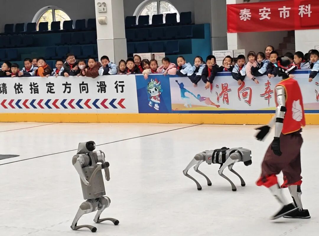 机器狗表演环节,灵活的跳跃、翻滚、跟随指令等动作憨态可掬,孩子们纷纷围在周边,近距离感受人工智能的神奇。