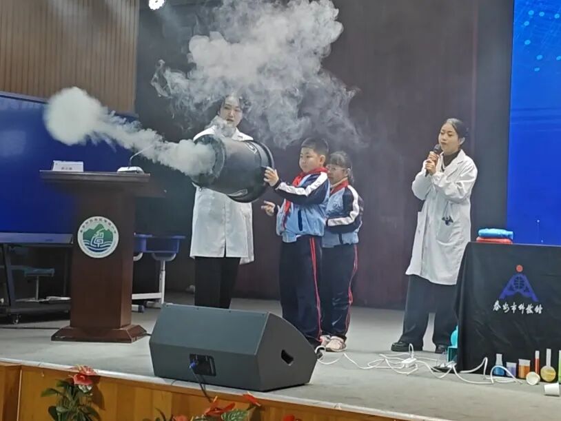 而报告厅内的科技秀,堪称一场“视觉与知识的双重盛宴”。空气炮实验、大气覆杯实验、伯努利火箭实验轮番上演。趣味互动让现场的欢乐氛围拉满,让学生沉浸式感受科学的神奇魅力,现场欢呼声与惊叹声此起彼伏。