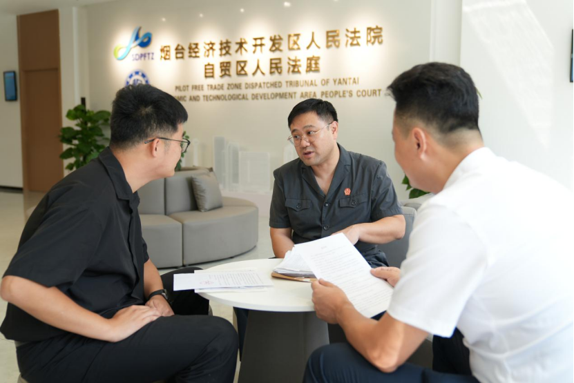 烟台开发区法院自贸区法庭开展解纷护航工作。