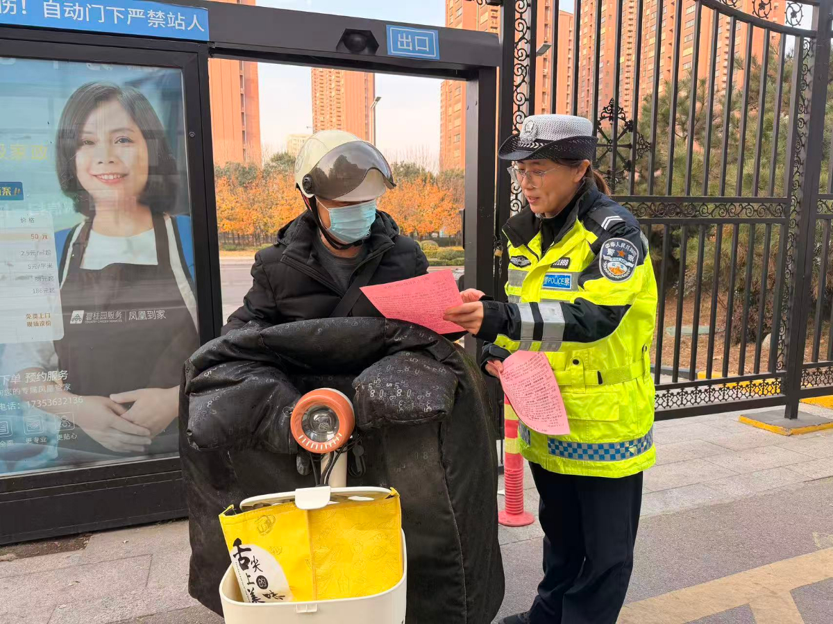 同时,民辅警还围绕电动车闯红灯、逆行、违法载人等常见交通违法行为展开宣传,引导居民自觉遵守交通法规。针对老年人、未成年人等重点群体,民辅警用通俗易懂的语言进行一对一讲解,叮嘱大家时刻将交通安全放在首位。此次宣传活动,让交通安全知识走进千家万户,进一步筑牢了社区居民的交通安全防线,营造出“人人讲安全、事事为安全、时时想安全”的良好氛围。