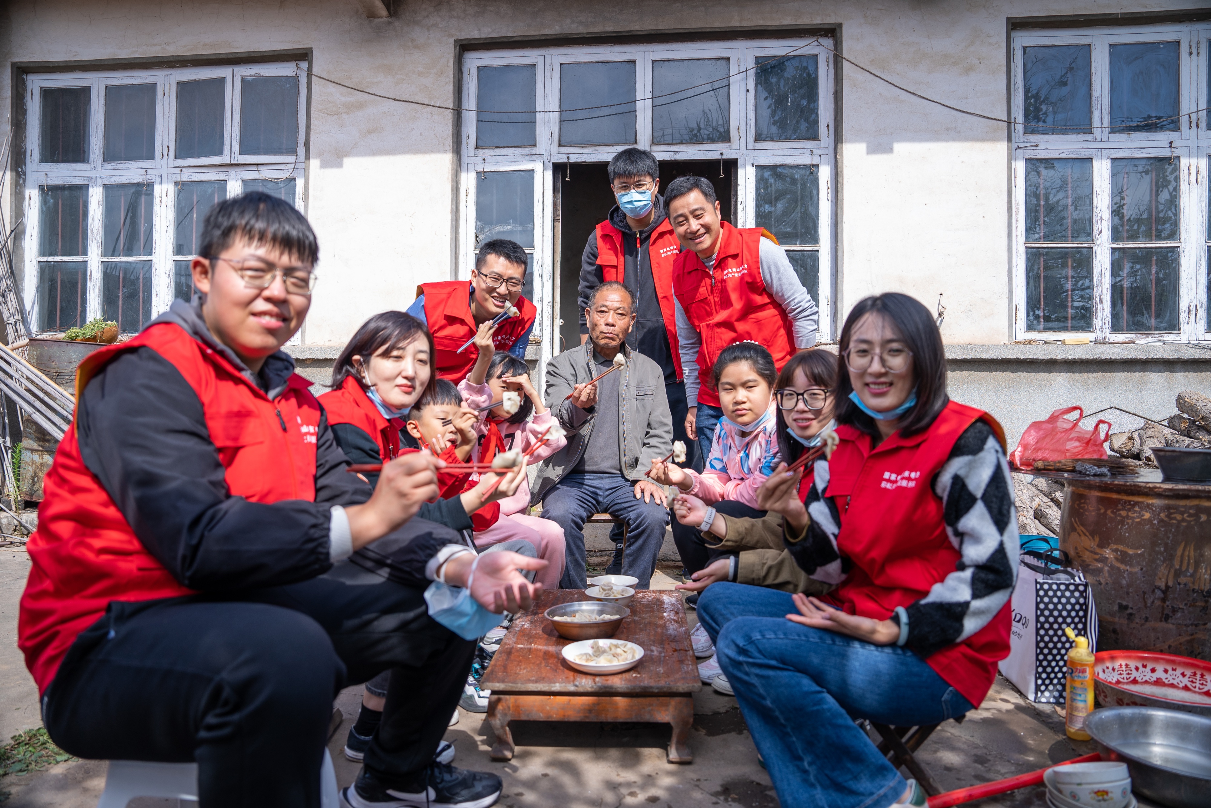 国网胶州市供电公司青年志愿者陪老人一起包饺子