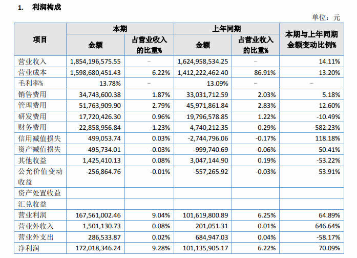 与治理问题形成反差的是,丰源轮胎近年业绩呈现爆发式增长。2024年财报显示,2023年公司营收16.25亿元,同比增长26.2%;2024年营收进一步增至18.54亿元,同比增长14.11%,净利润达1.72亿元,较2023年的1.01亿元大幅增长70.09%。从财务指标看,2023年、2024年扣非后归母净利润分别为9919.47万元、1.70亿元,加权平均净资产收益率分别达14.83%、20.08%,符合北交所上市第一套标准的财务要求。财报显示,2024年外销收入达14.12亿元,较2023年增长12.86%,更值得注意的是,2025年上半年业绩已显露疲态,营收8.09亿元同比下滑12.07%,净利润0.61亿元同比下降44.16%,增长持续性存疑。