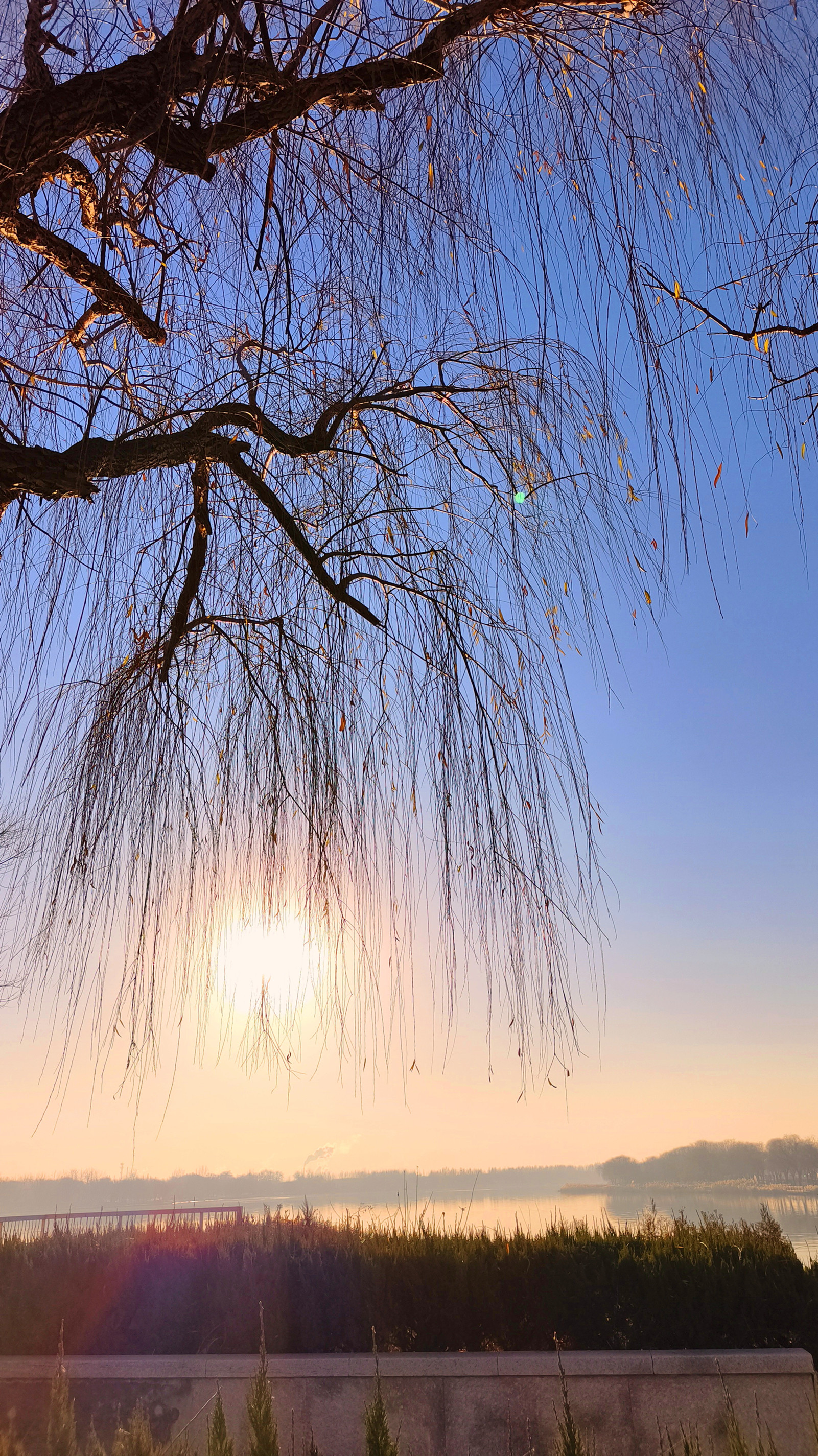 冬日清晨阳光初照柳枝在逆光中呈现出柔和而清冷的美感柳枝纤细在晨光中勾勒出清晰的轮廓仿佛一幅幅静谧的水墨画利津县委办公室李树军拍摄