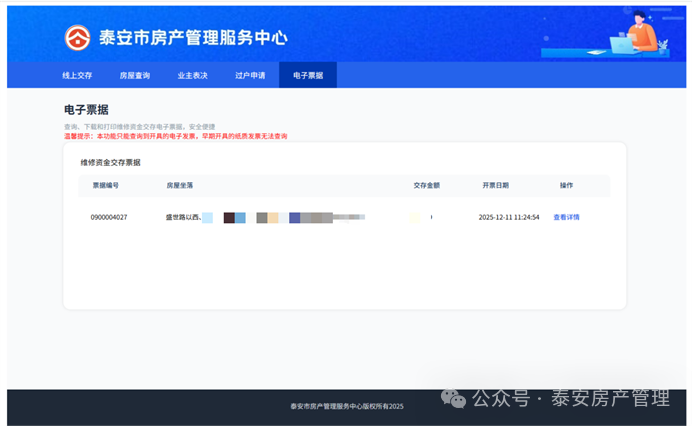 平台重点推出多项智慧功能,助力业务办理更省时、更透明、更安心。实现房产过户与维修资金过户“一键联动”,群众办理过户业务时只需勾选“维修资金协同过户”,即可同步完成两项业务,无需重复提交材料、多次往返;支持维修资金余额、使用明细及收益情况的实时多渠道在线查询;新增线上表决、全程网办等功能,审核进度实时可查;交存业务自动生成电子票据,可随时下载保存,让群众享受更加便捷、透明、高效的服务体验。